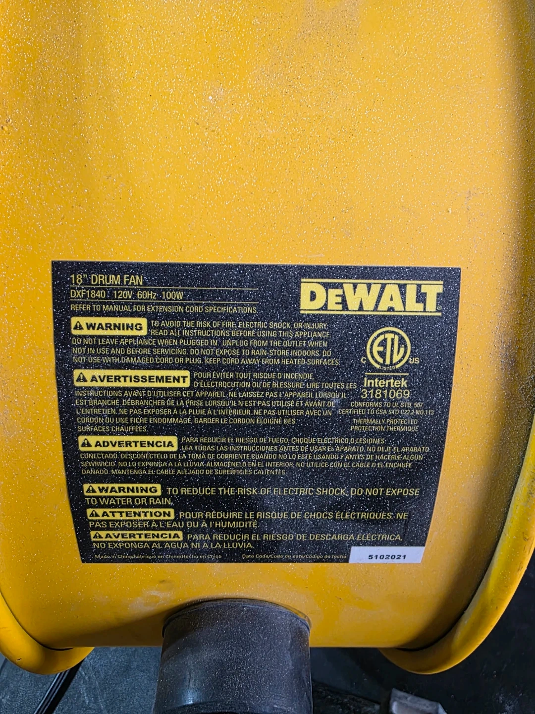 DeWalt 18" Drum Fan - Yellow