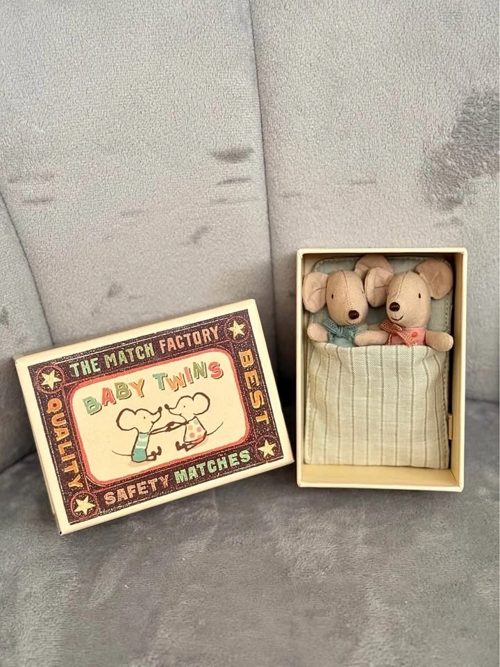 MAILEG TWINS, BABY MICE IN MATCHBOX