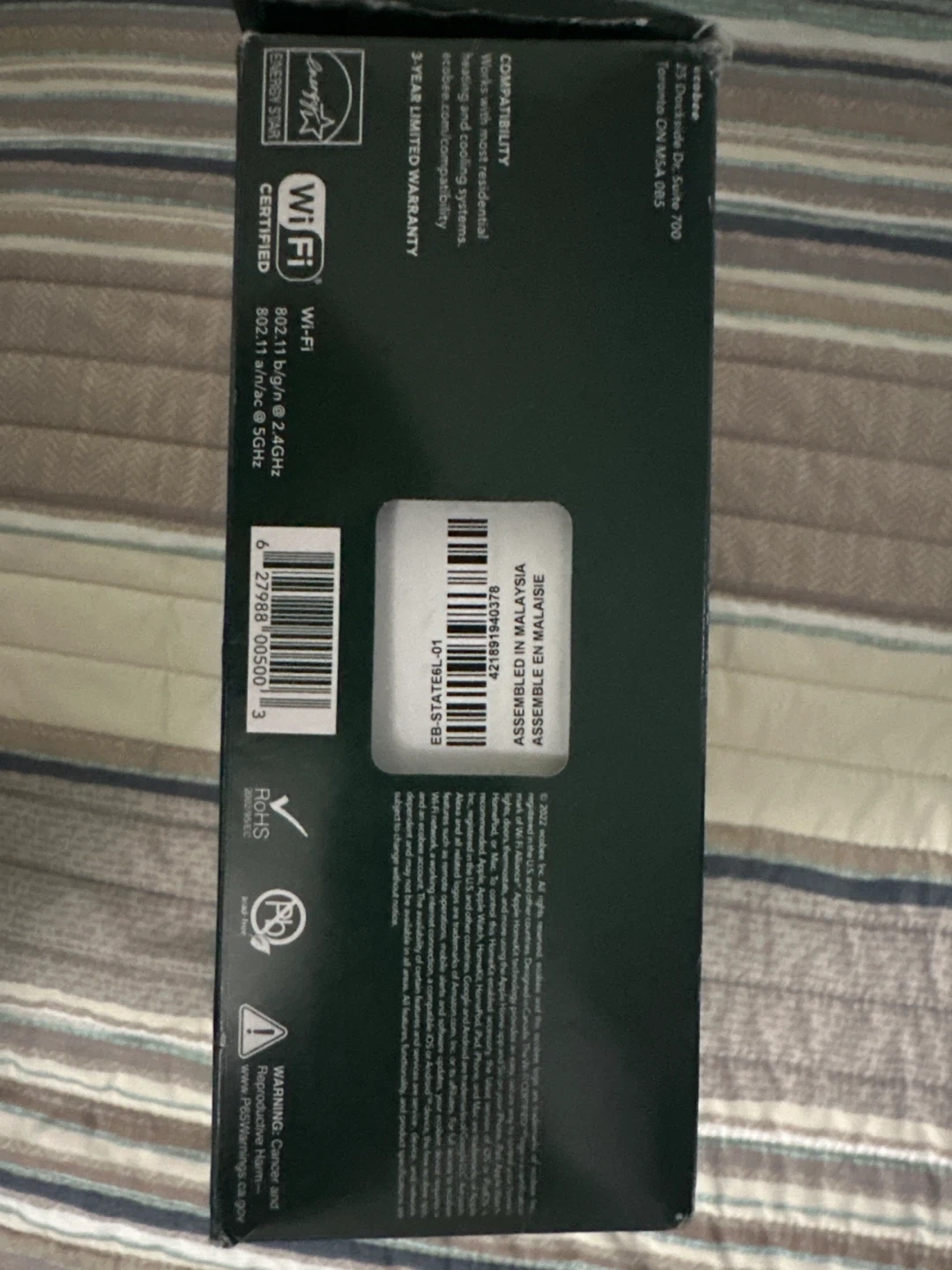 Selling an Ecobee Smart Thermostat Enhanced. It helps you live comfortably and save automatically! The box is included. Save up to 26% per year on heating and cooling costs compared to a hold at 72°F. Brand new but beat up box