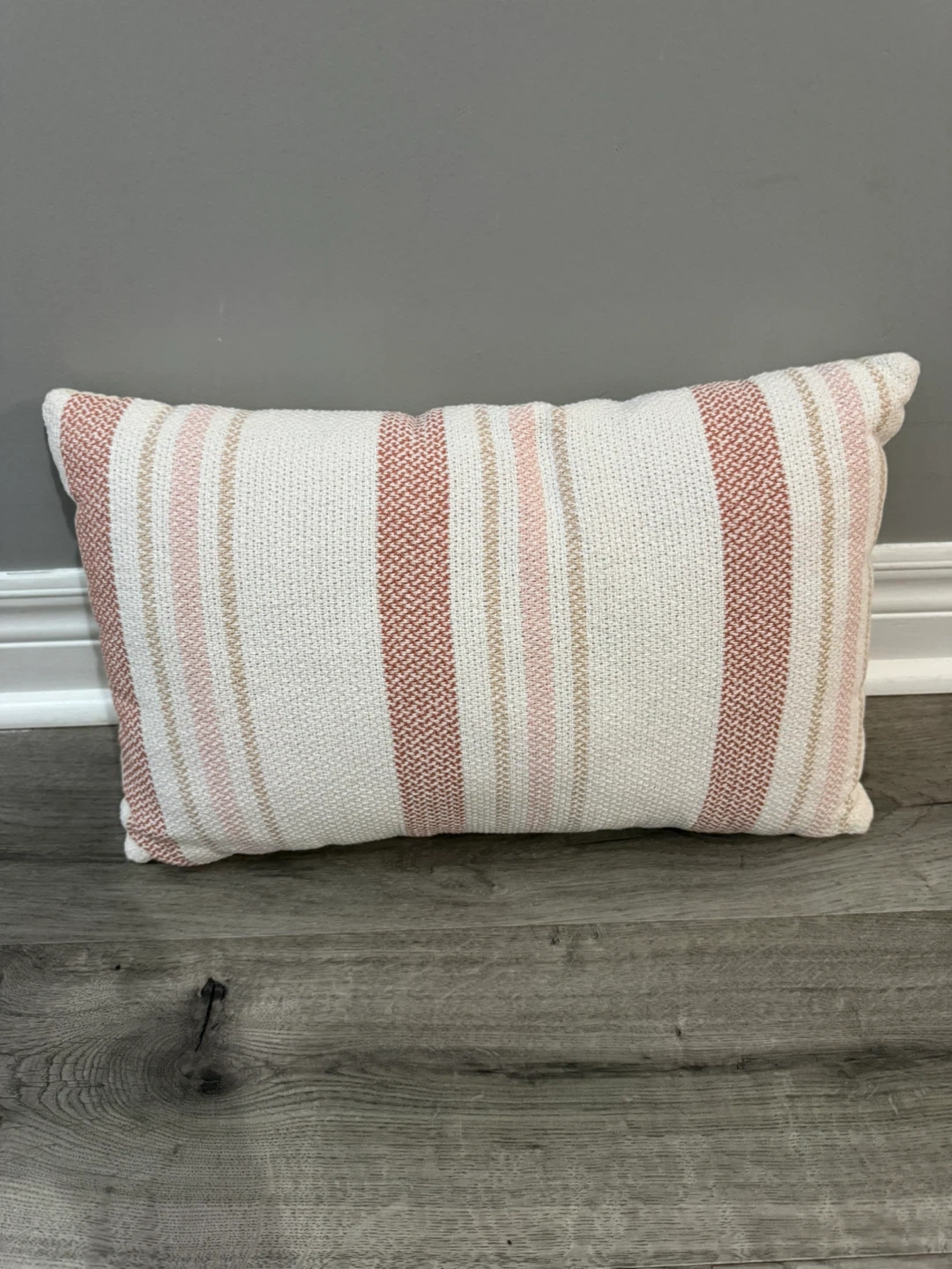 Add a touch of cozy charm to your space with this lovely blush striped throw pillow! It's in great condition and ready to brighten up your couch or bed. The neutral tones and subtle stripes make it a versatile addition to any room. Perfect for adding a pop of colour!