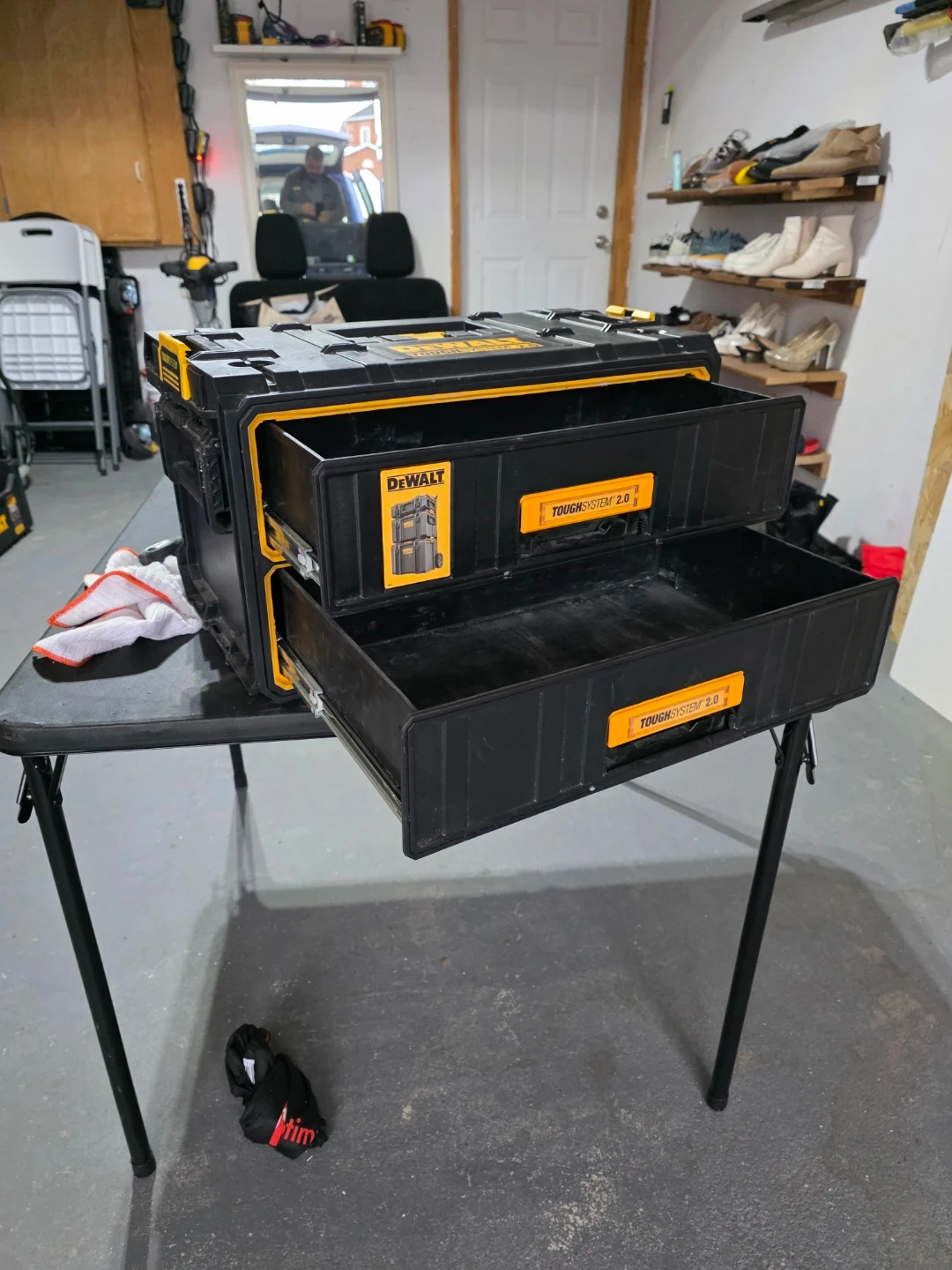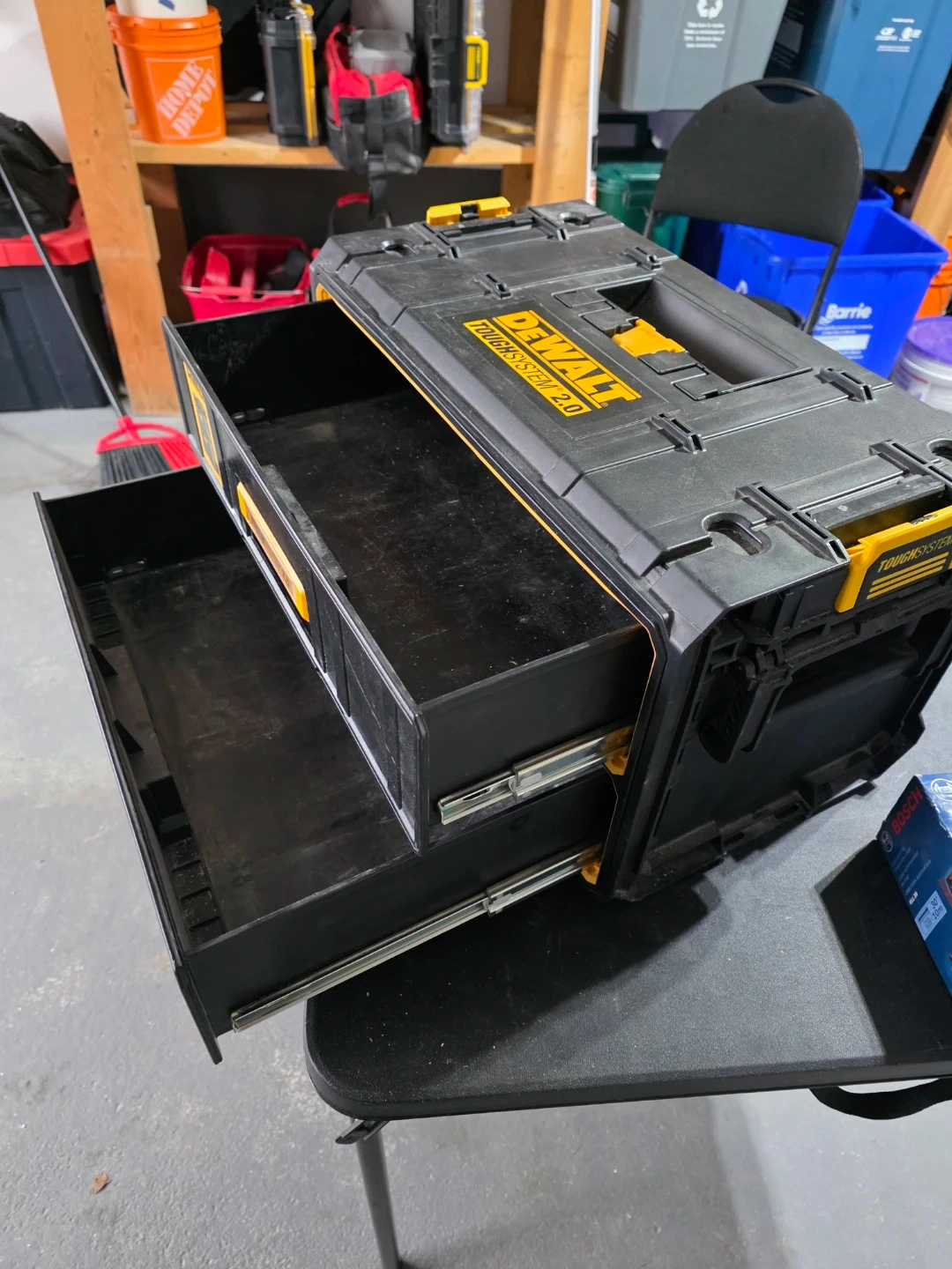 Selling a DeWalt ToughSystem 2.0 tool box. This modular storage solution is perfect for keeping your tools organized and easily accessible. It features durable construction and a convenient design for the job site or garage.