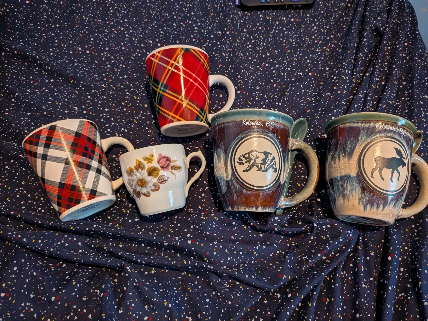 Selling a collection of used kitchenware. Includes a variety of pots and pans, some glasses, and a selection of mugs. Good for someone setting up a new kitchen or looking to add to their collection