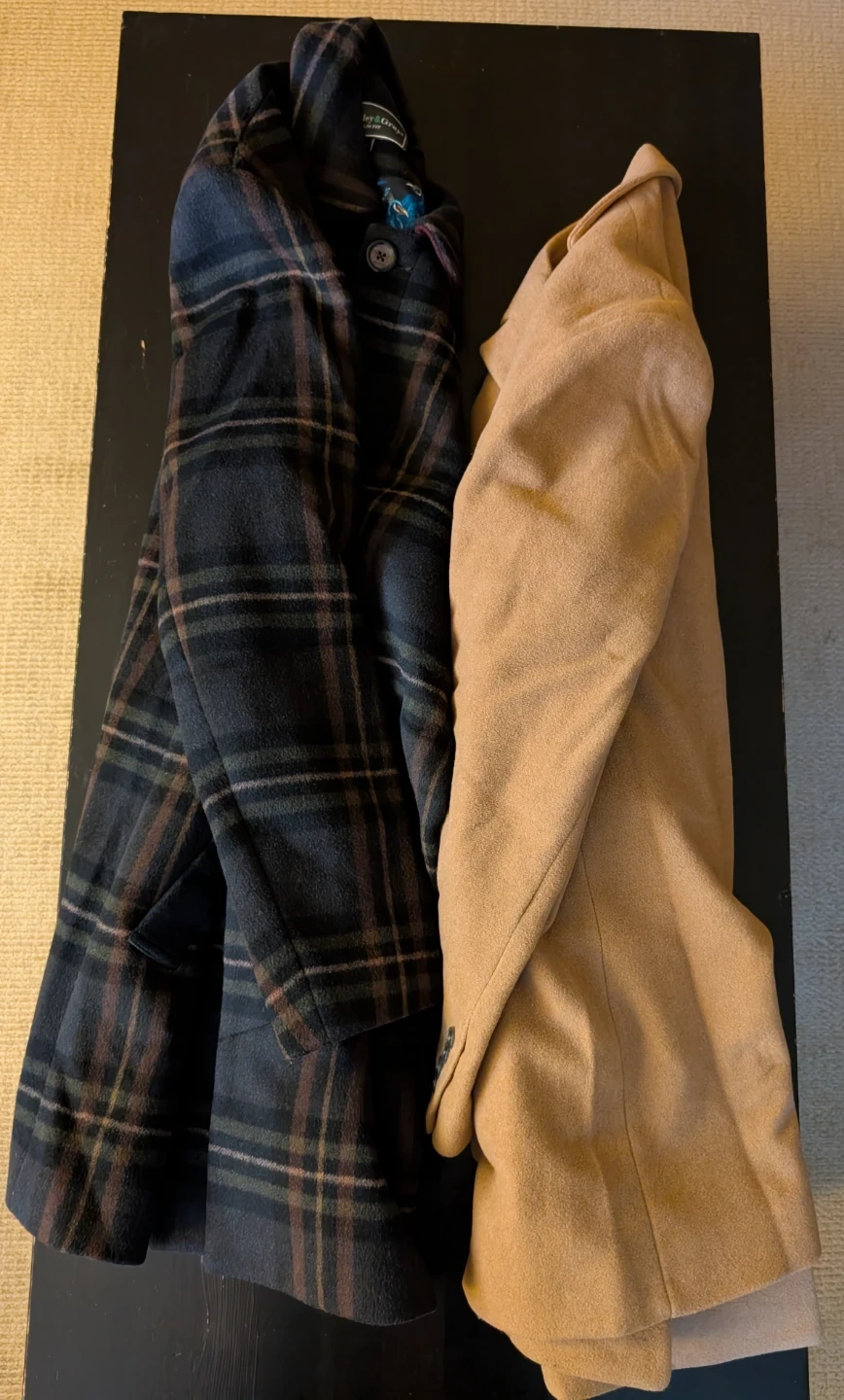 Selling two coats! One is a classic plaid pattern and the other is a solid tan colour. Both are in great condition and perfect for the cooler weather. Paisley & Gray is a size Large Slim and The Calvin Klein is a Size Medium.