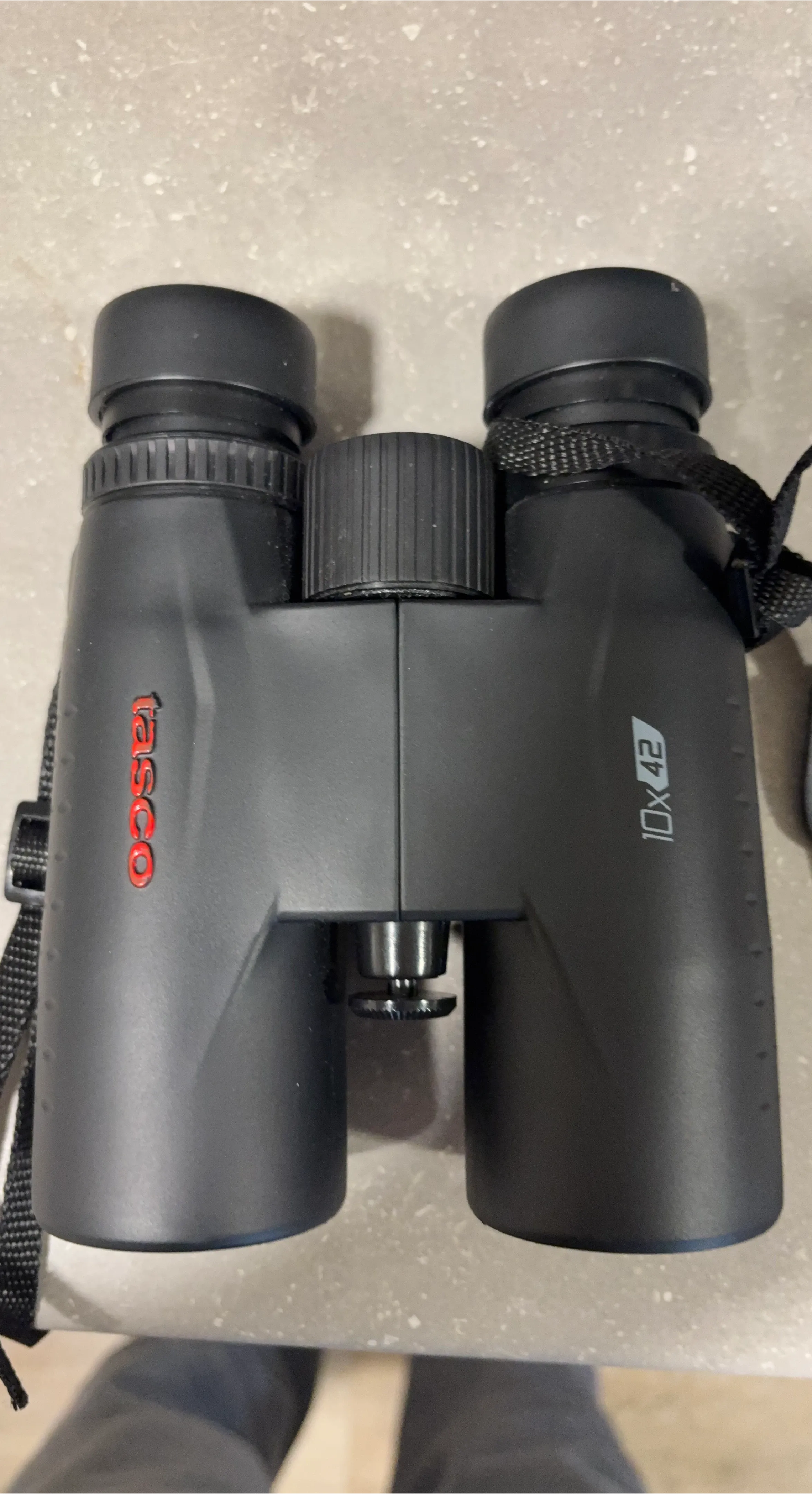 Looking to sell my Tasco Essentials binoculars! They're in great shape and ready for your next adventure. These 10x42 binoculars are perfect for birdwatching, hiking, or any outdoor activity where you want a closer look. Also included is a carrying bag and the lens covers.