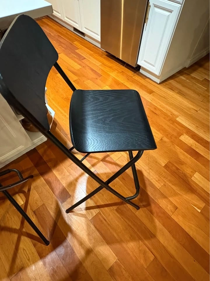• 2 black wood counter stools