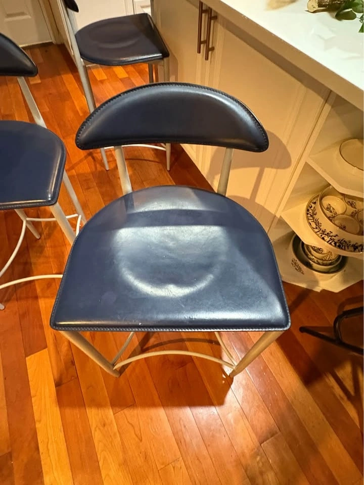 • 3 blue faux-leather counter stools