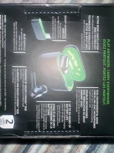 The Razer Hammerhead HyperSpeed Wireless Canal Earbud in black offers gamers a seamless gaming experience with its Bluetooth connectivity and active noise cancellation feature. Designed for Xbox consoles, this in-ear headset provides a comfortable fit with its double earpieces and built-in microphone. The compact form factor and 0.5m Type C charging cable make it convenient for on-the-go gaming sessions. Experience high-speed multiplayer gaming with the Razer Hammerhead HyperSpeed headset in 2022. ONLY Opened BOX TO SEE IF THEY TURNED ON. NEVER USED