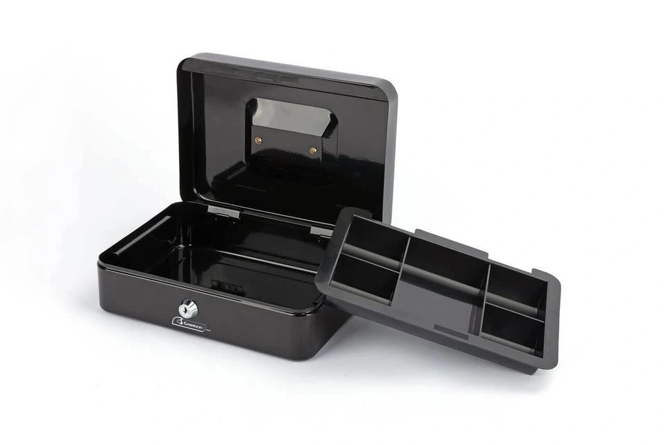 Garrison Heavy-Duty Steel Cash Box With Carrying Handle, Includes a key, Black