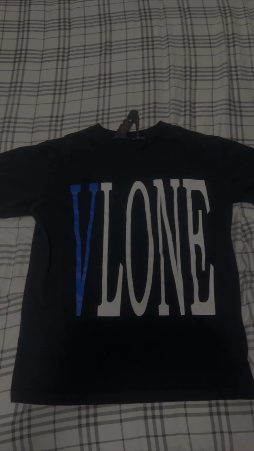 Selling a VLONE black t-shirt with the iconic snake logo. It's in great condition and ready for a new home! The shirt features a large 'V' with a snake wrapped around it, along with the VLONE logo on the back. Perfect for fans of streetwear and unique designs