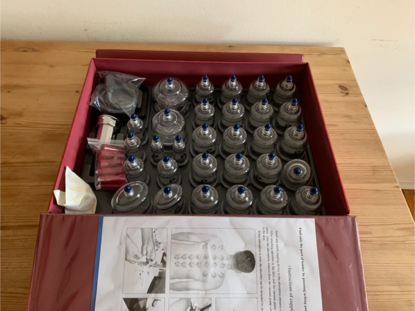 I'm selling a brand new Hansol Bu-Hang cupping therapy set! This set includes various sizes of cups and accessories, all neatly organized in its original box. It's a complete set ready for use.
