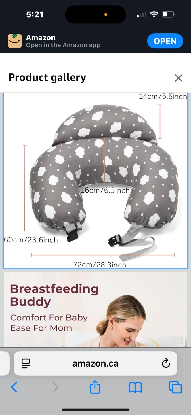 I'm selling a Breastfeeding Buddy pillow! It's designed for baby's comfort and ease for mom. The pillow is grey with a cute cloud pattern. It measures approximately 60cm/23.6 inches in height, 14cm/5.5 inches in width, and 72cm/28.3 inches in length.