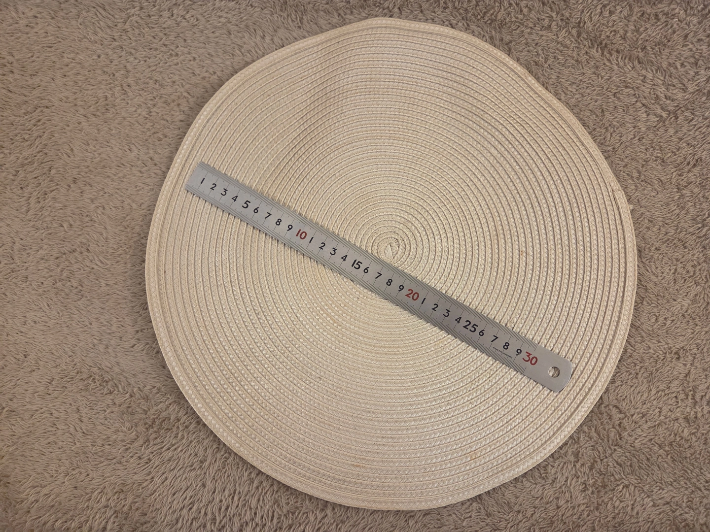 Set of 4 Round Woven Placemats, Beige 15 in
