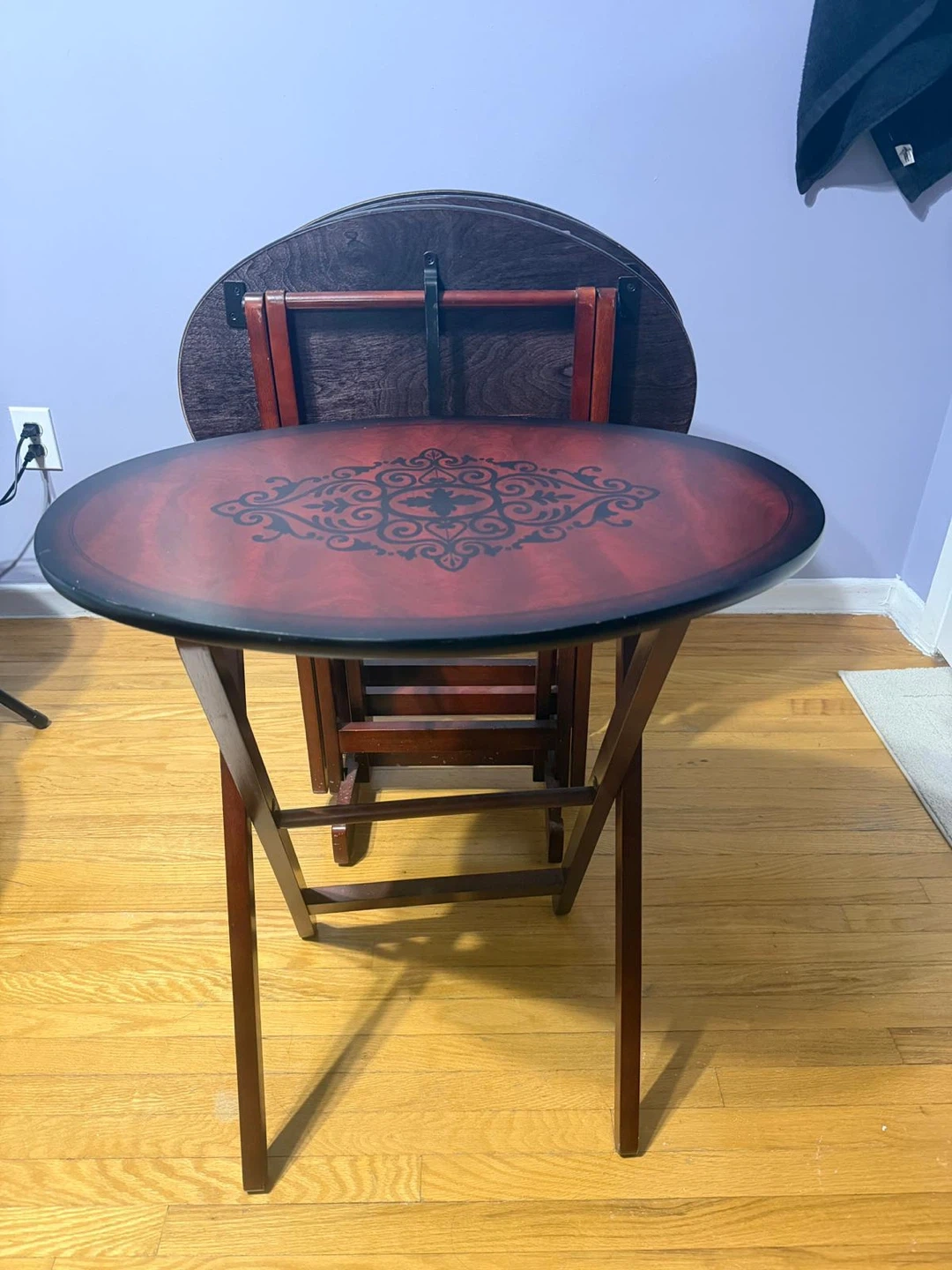Selling a set of 4 folding TV tray tables. They're in good condition and perfect for snacks, meals, or working from the couch. The tables are easy to store and don't take up much space when folded.