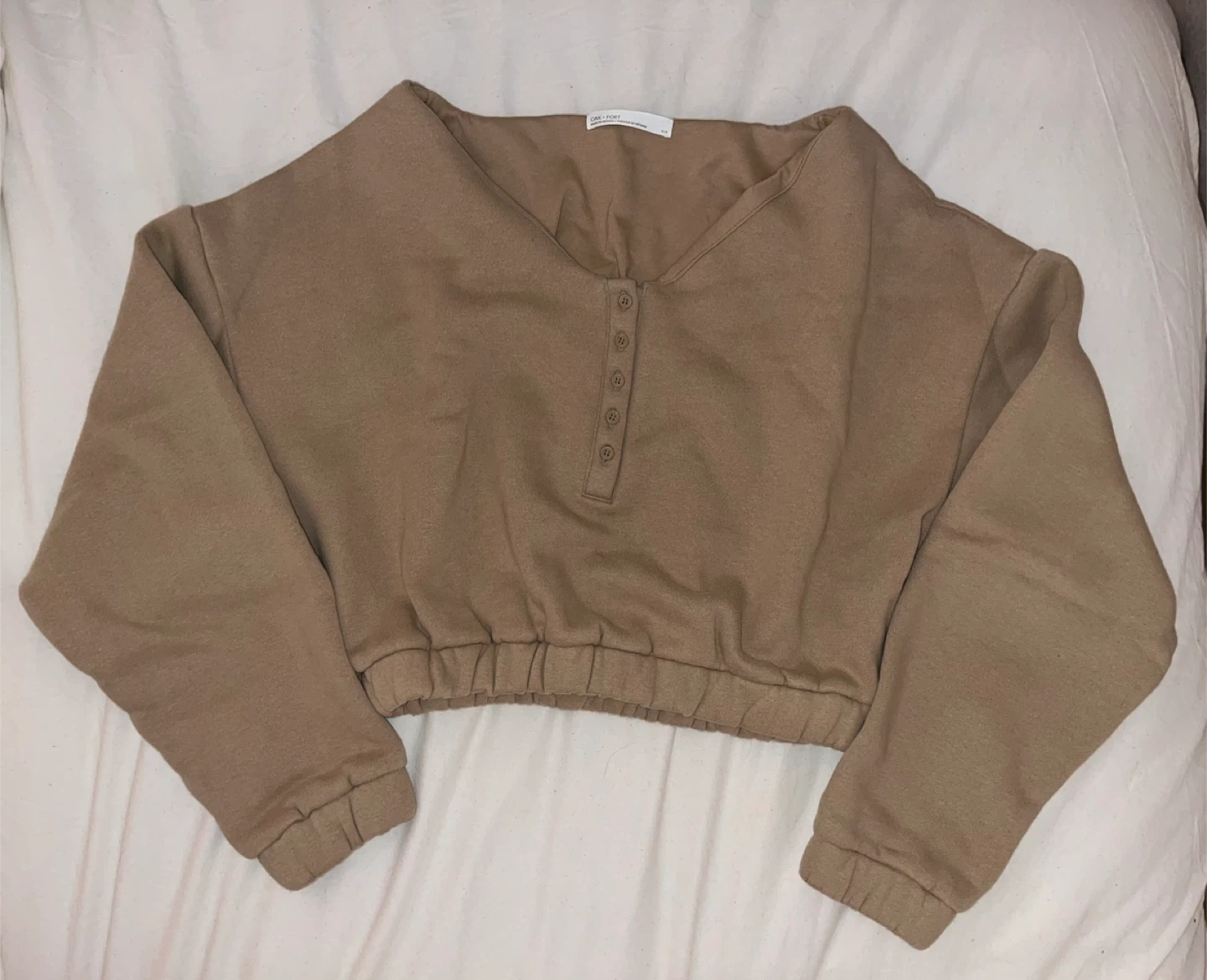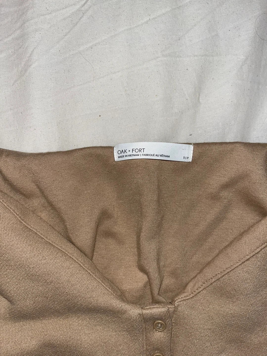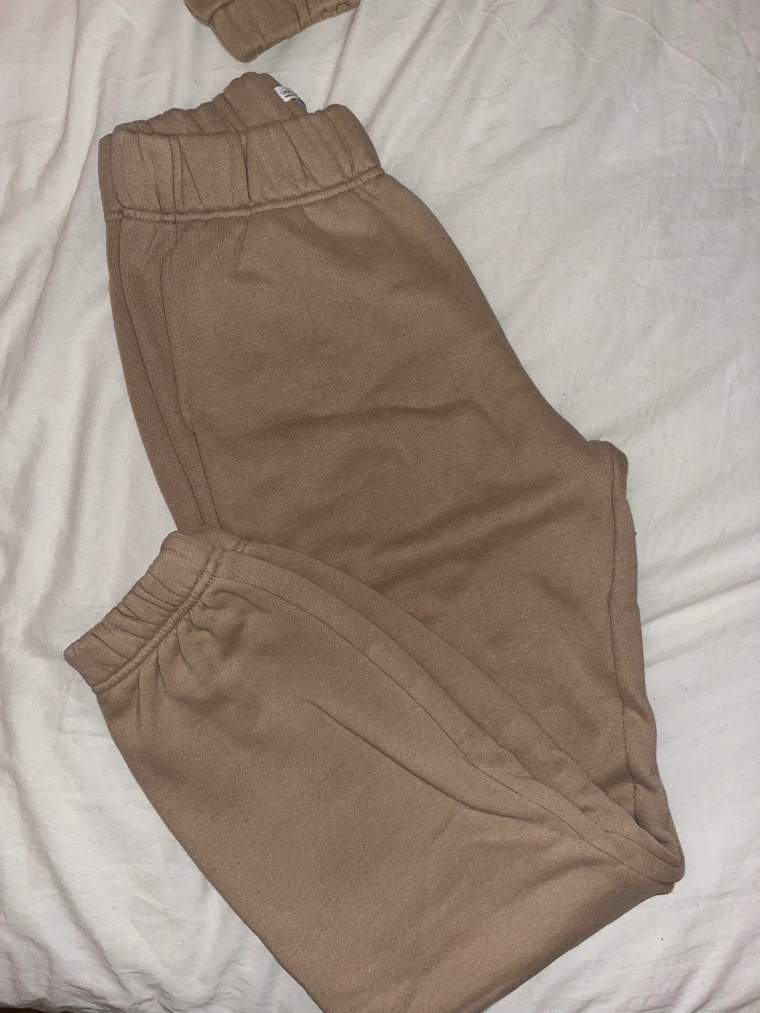 Selling a comfy Oak + Fort loungewear set. It's a beautiful beige colour with a size Small cropped sweater and Extra Small joggers. Perfect for relaxing at home or running errands!