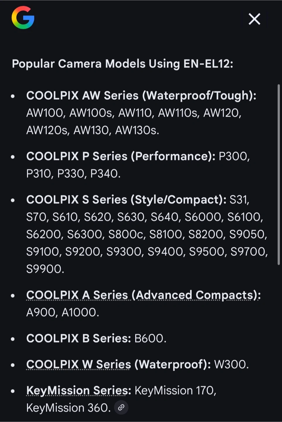 It includes both the battery and the charger so you're all set to go! Great for keeping your camera powered up and ready to capture those special moments