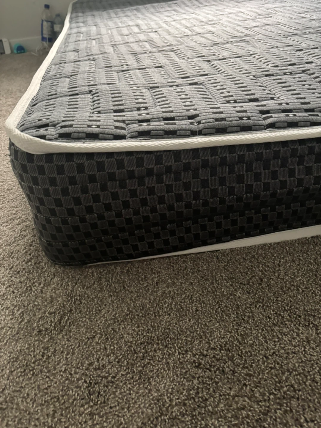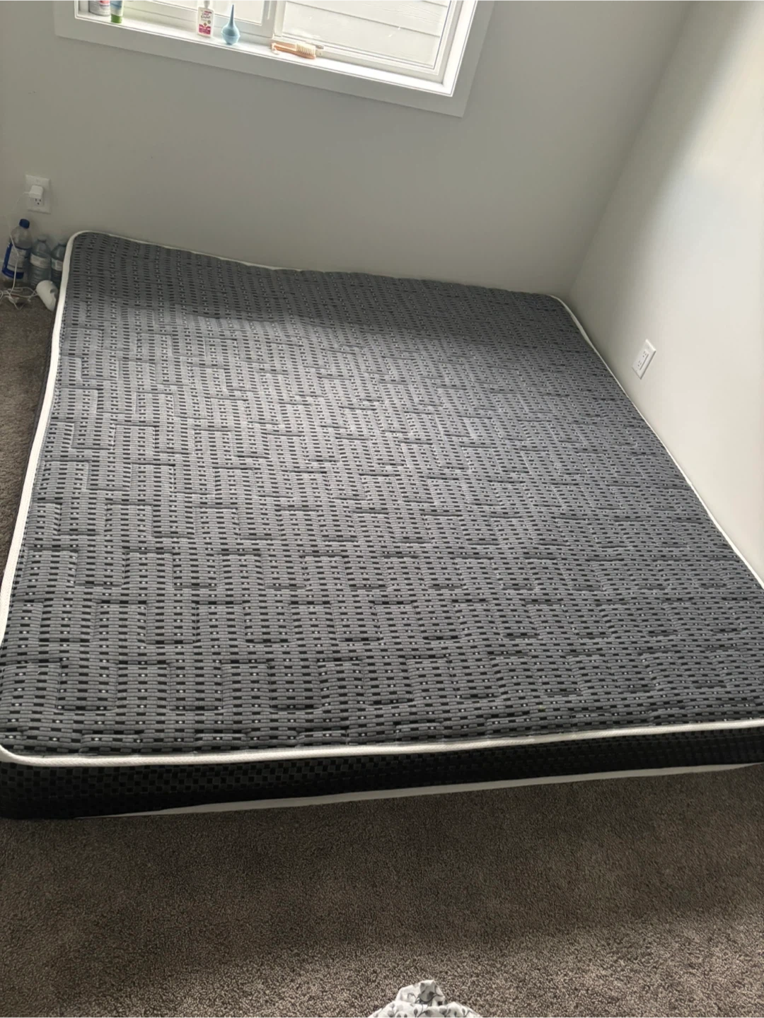 Selling a king size mattress . New, just unpacking . Never used. It has a grey patterned top and sides. Perfect for a guest room or anyone needing a comfy place to sleep