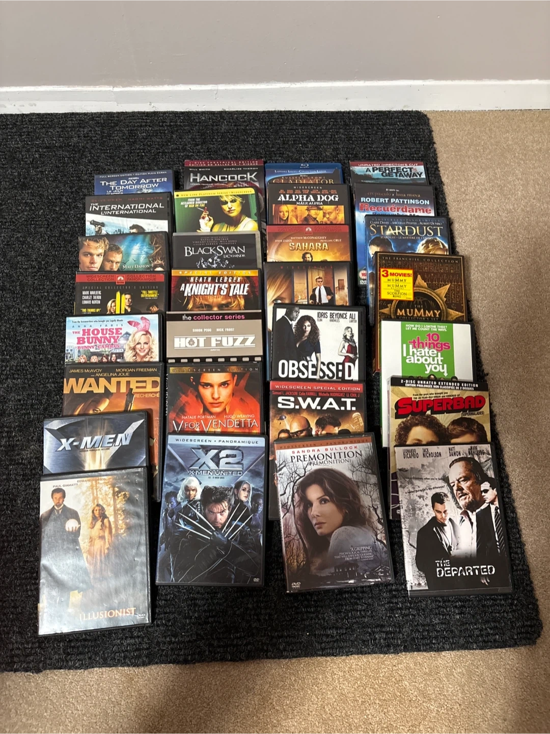 Selling a diverse collection of DVDs, featuring titles like Hancock, Black Swan, and X-Men. Perfect for movie nights!