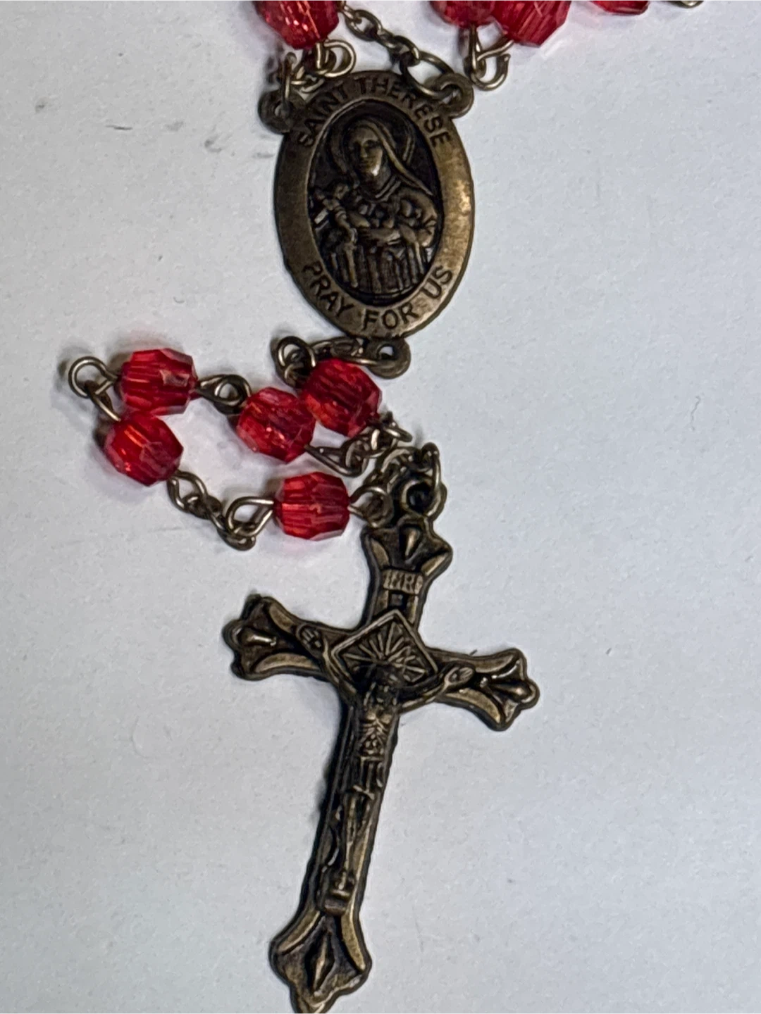 Red Beaded Rosary with Saint Therese Medal