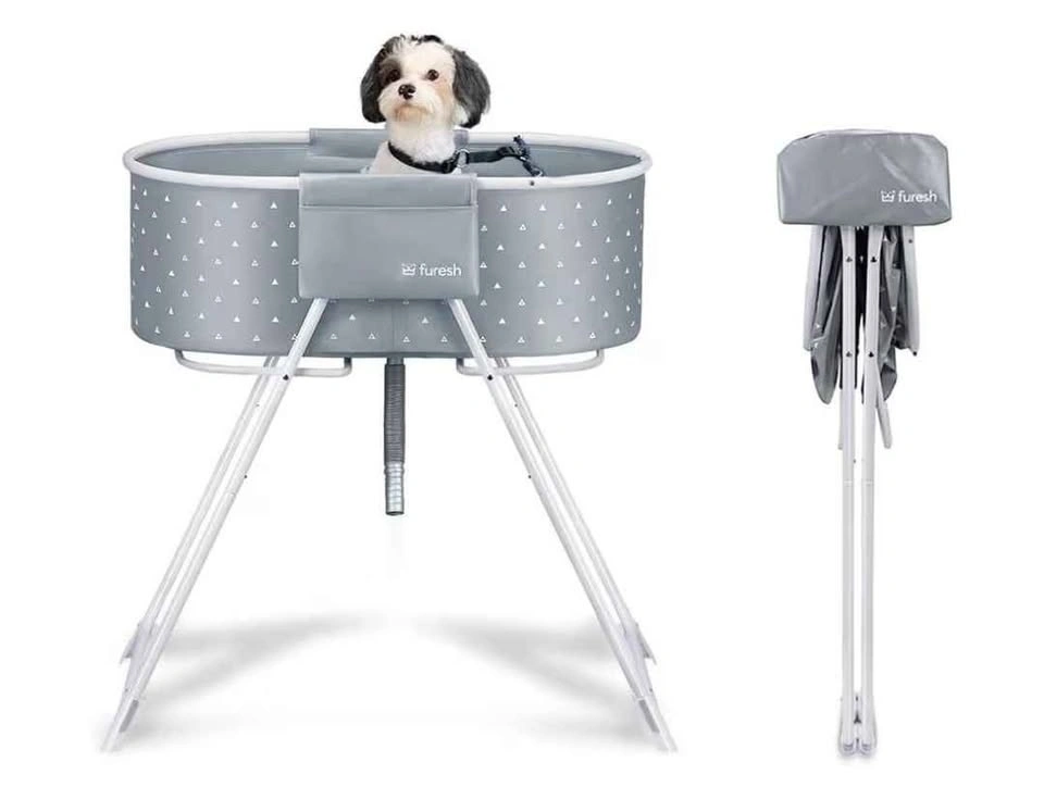 The Furesh Elevated Folding Dog Bath is a portable grooming station designed to take the physical strain out of pet hygiene. By raising your pet to an ergonomic height, it eliminates the need to kneel over a standard bathtub or garden hose, making it a favorite for pet owners with back or knee pain.