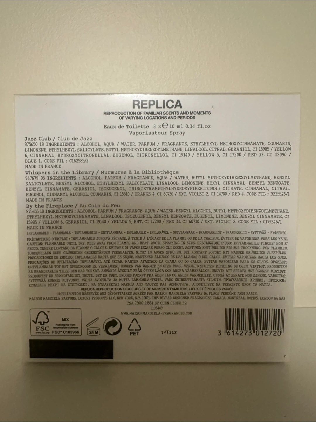 Selling a Maison Margiela REPLICA Discovery Set! This set includes three 10ml Eau de Toilette fragrances: Jazz Club, Whispers in the Library, and By the Fireplace. Perfect for sampling these popular scents!