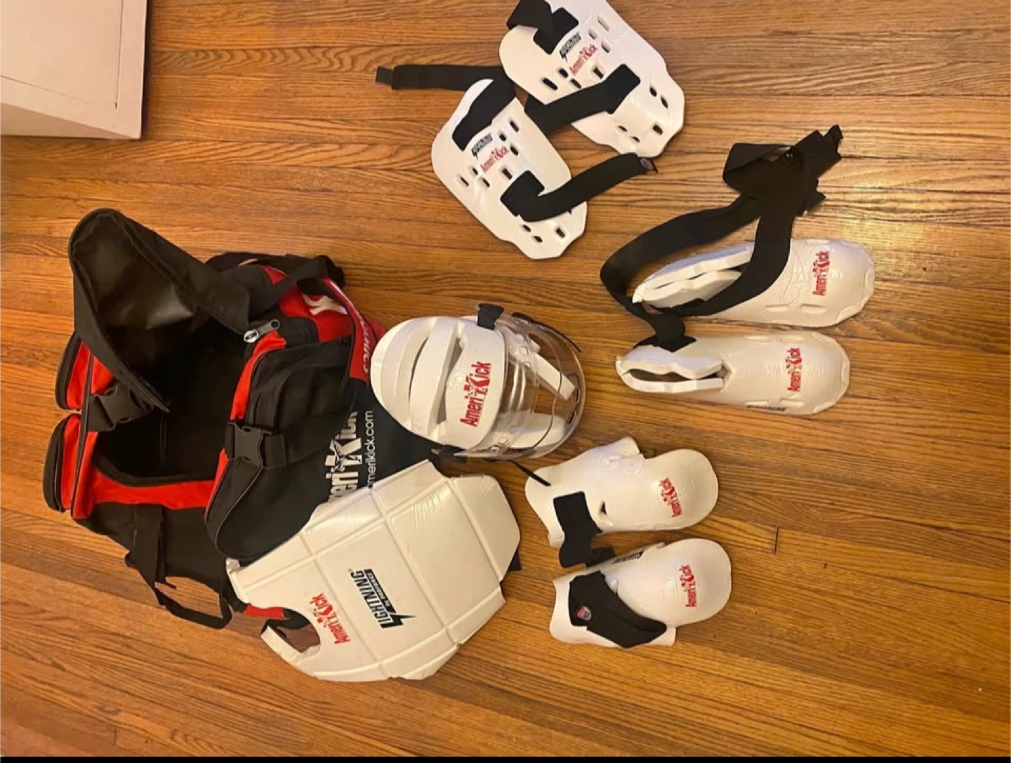 Selling a set of Amerikick martial arts gear! Includes a bag, headgear, gloves, shin guards, and foot protectors. Great for anyone involved in martial arts