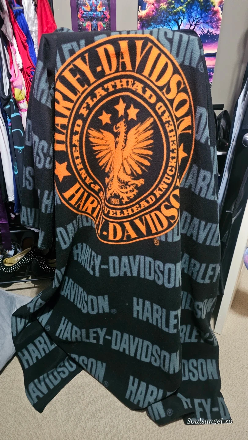 Snuggle up with this cozy Harley-Davidson fleece blanket! It features the classic Harley-Davidson logo and design. Perfect for keeping warm on chilly nights or adding a touch of biker style to your home.