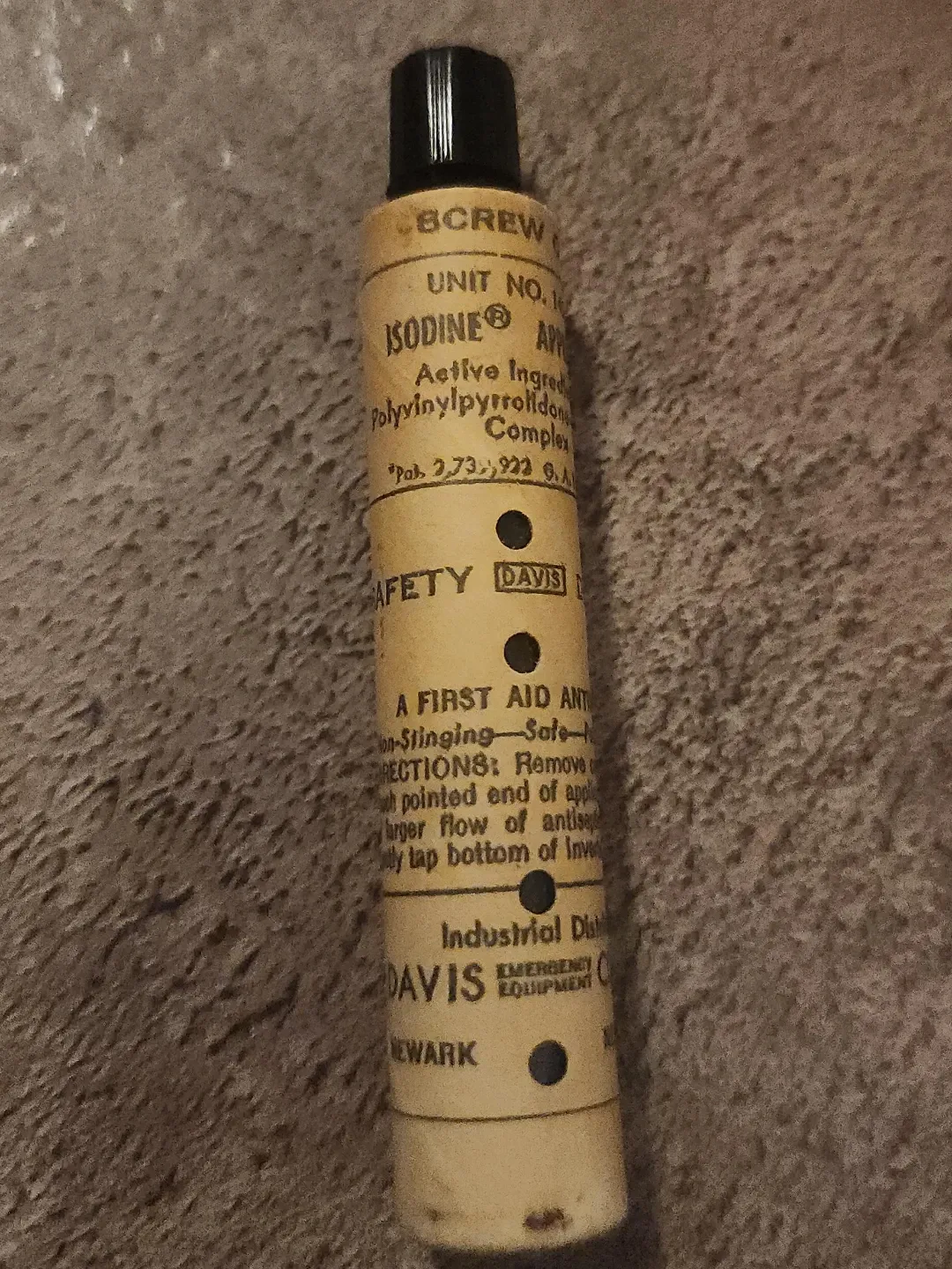 Selling a Davis Isodine antiseptic applicator. It's a first aid antiseptic that is non-stinging and safe. Directions for use are included on the packaging; remove the pointed end of the applicator for a larger flow of antiseptic, and gently tap the bottom of the inverted applicator