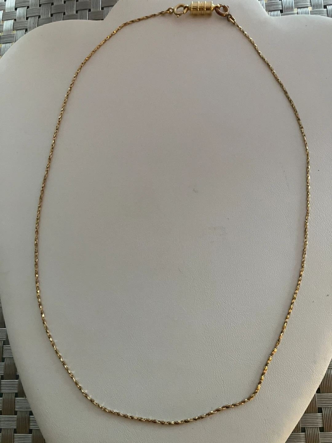 Selling a delicate gold chain necklace! It measures approximately 20 inches in length. Perfect for layering or wearing on its own!