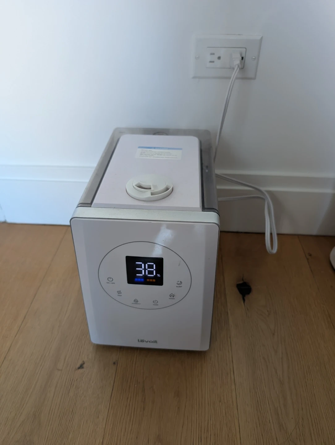 Selling a Levoit humidifier in great condition! It's white and has a digital display on the front. Perfect for adding moisture to the air in your home.