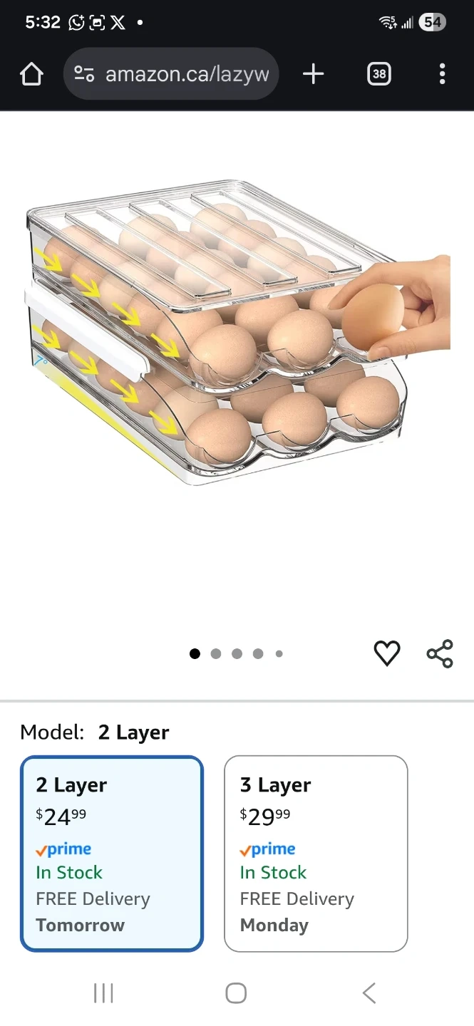 Keep your eggs organized with this handy 2-layer egg storage container! It's a great way to save space in your fridge and keep your eggs fresh. Originally bought for $24.99.