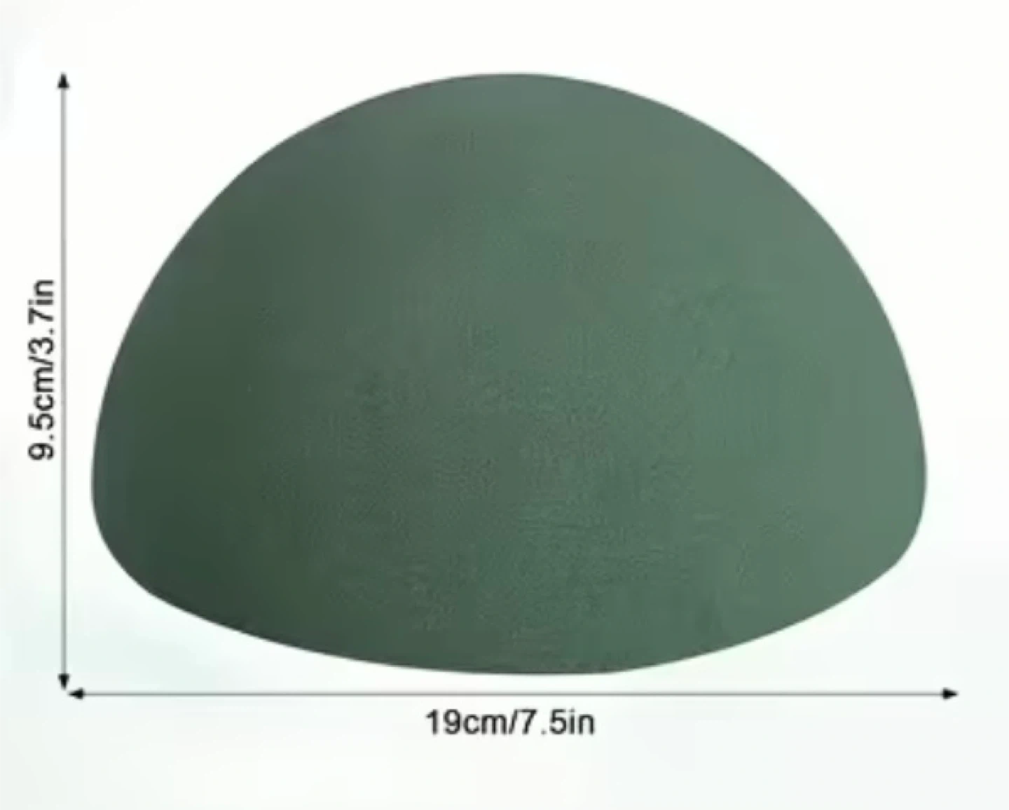 Selling a green floral foam hemisphere. It measures approximately 7.5 inches in diameter and 3.7 inches in height. Perfect for floral arrangements or craft projects! 2 pcs.