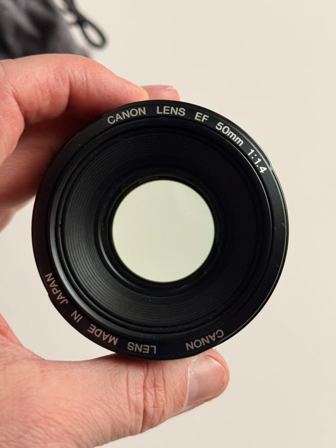 Selling a Canon EF 50mm f/1.4 lens. It's in new condition and ready for a new photographer! Includes Canon lens pouch. This lens is known for its excellent image quality and fast aperture, perfect for portraits and low-light photography. It’s one of the most popular lenses Canon has ever made.