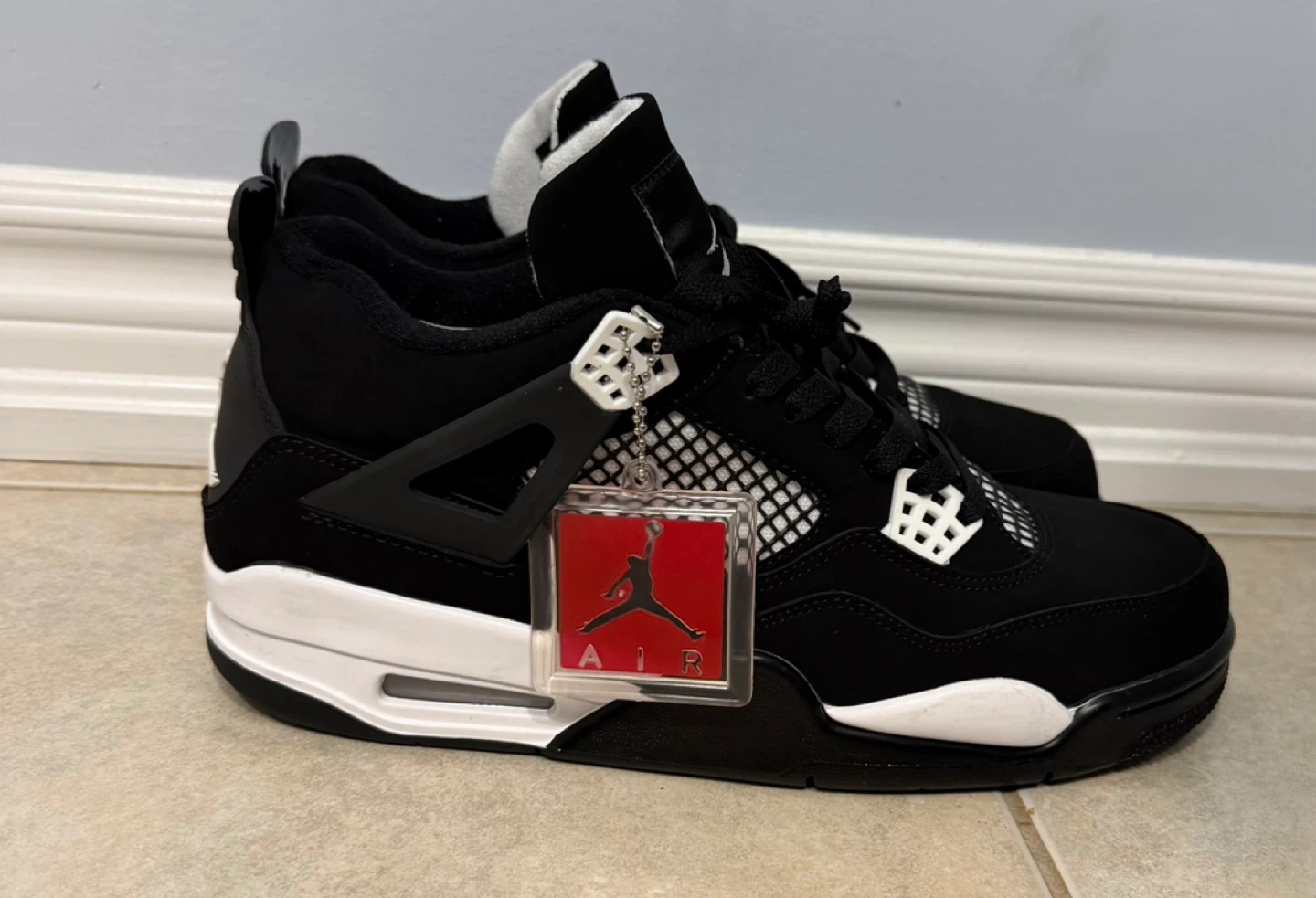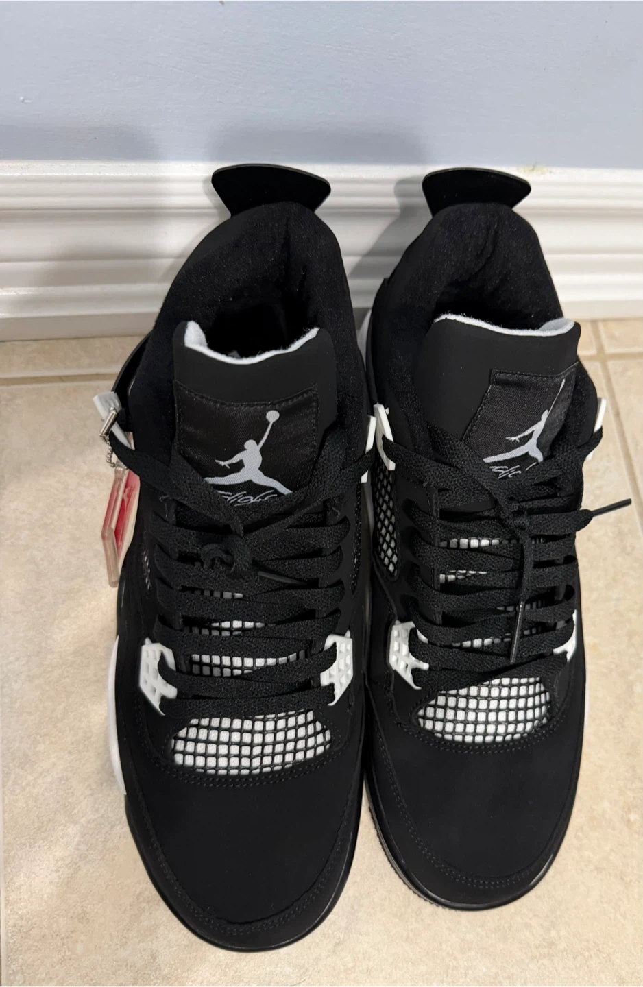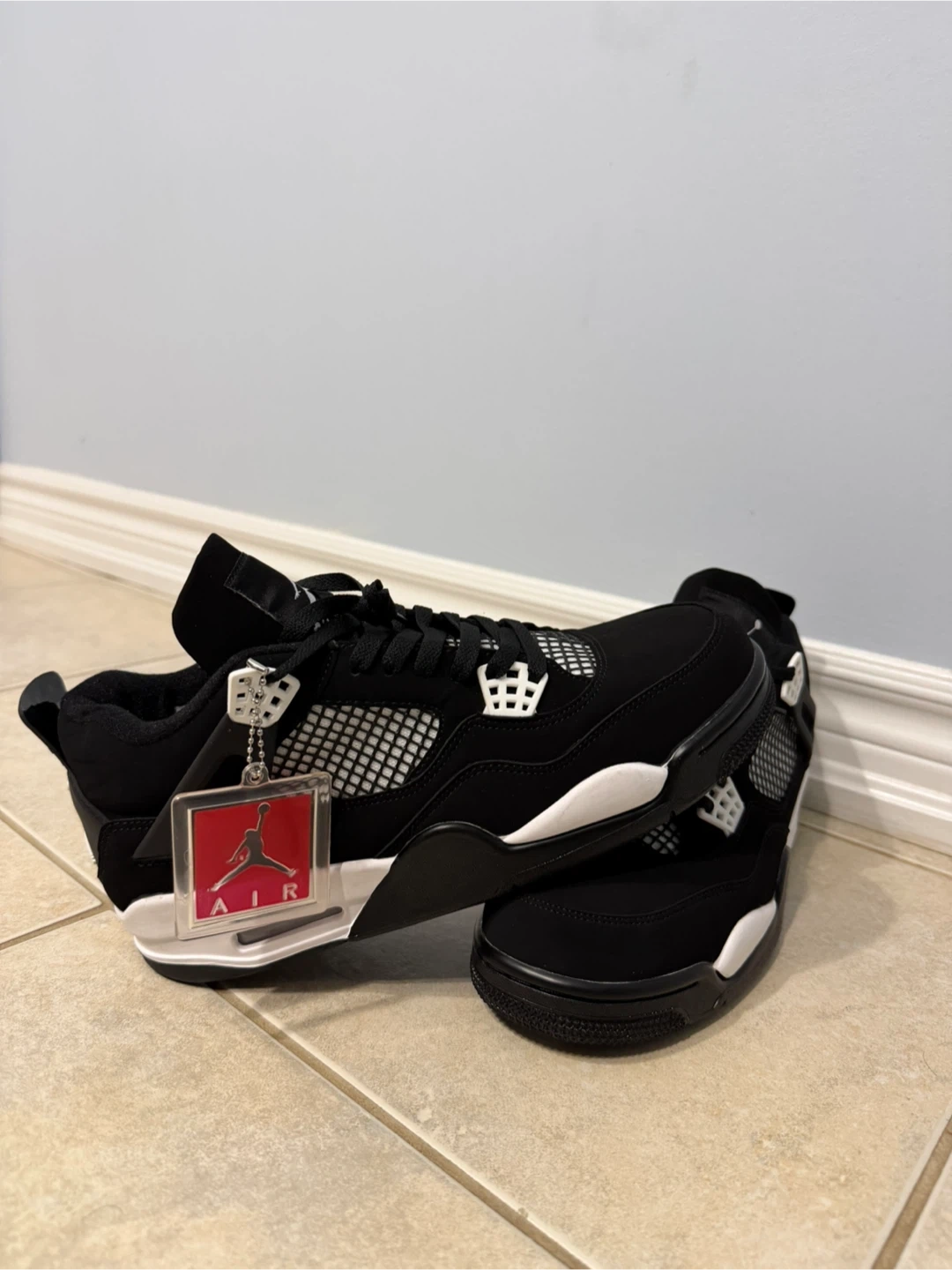Selling a pair of Jordan 4 Retro in the Black Canvas colourway. They're in great shape and ready for a new owner. These shoes are stylish and comfortable, perfect for everyday wear or hitting the court. Don't miss out!