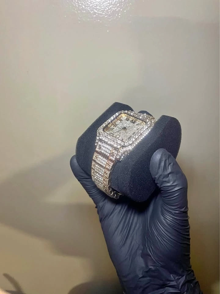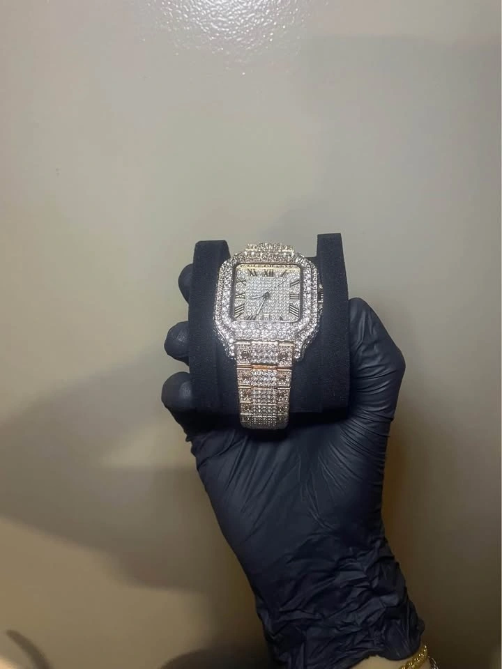 GOLD ICED OUT WATCH CARTIII STYLE, DM FOR MORE PHOTOS OR VIDEOS
