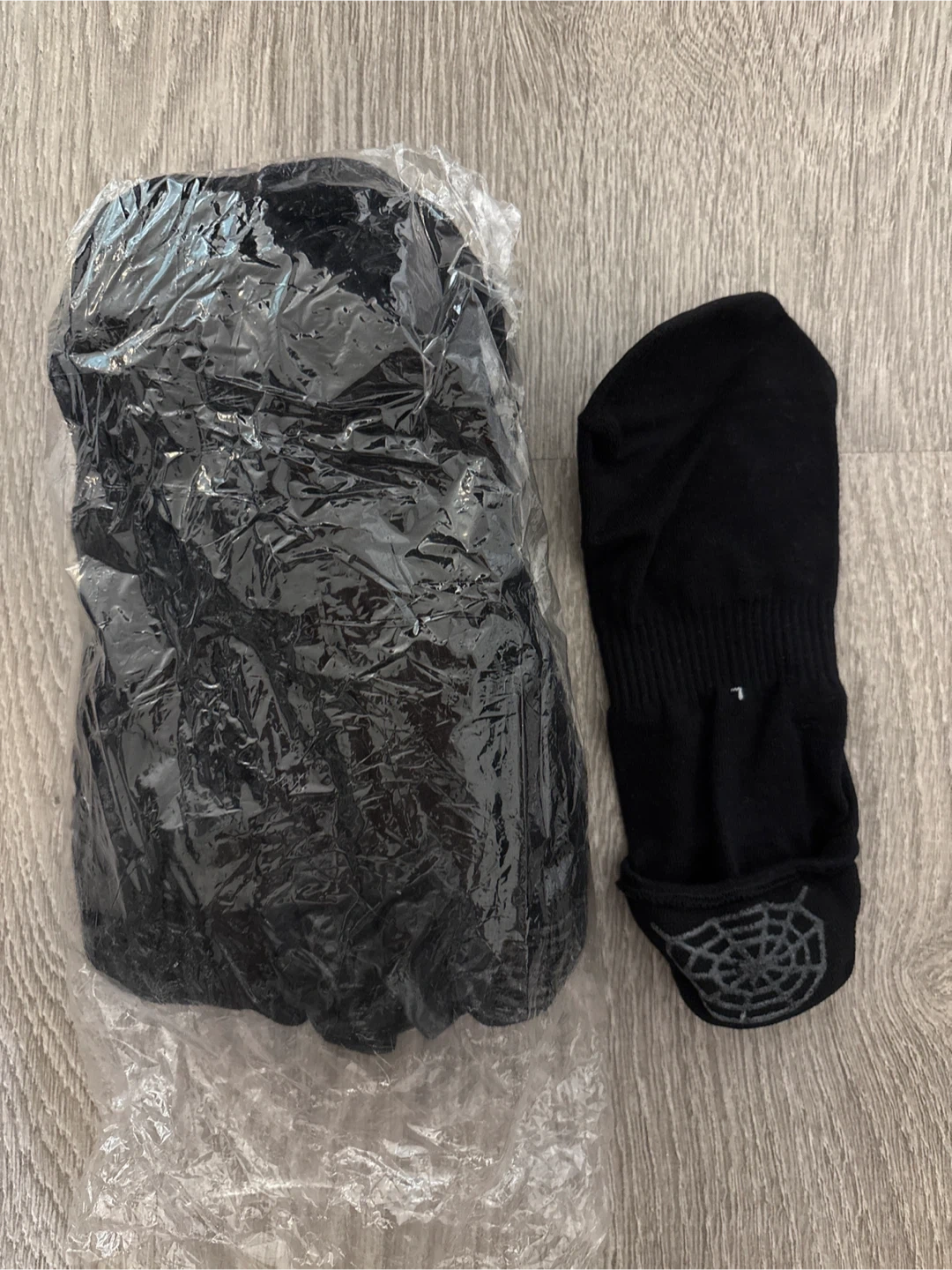 I have a set of black non-slip socks, size large. They are brand new and still in the original packaging. These socks are great for keeping your feet warm and preventing slips!