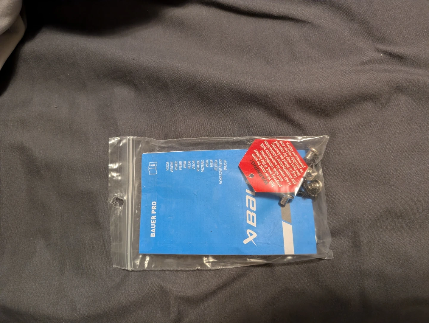 Selling a Bauer Pro hockey helmet visor. It appears to be in good condition and includes the mounting hardware in the original packaging!