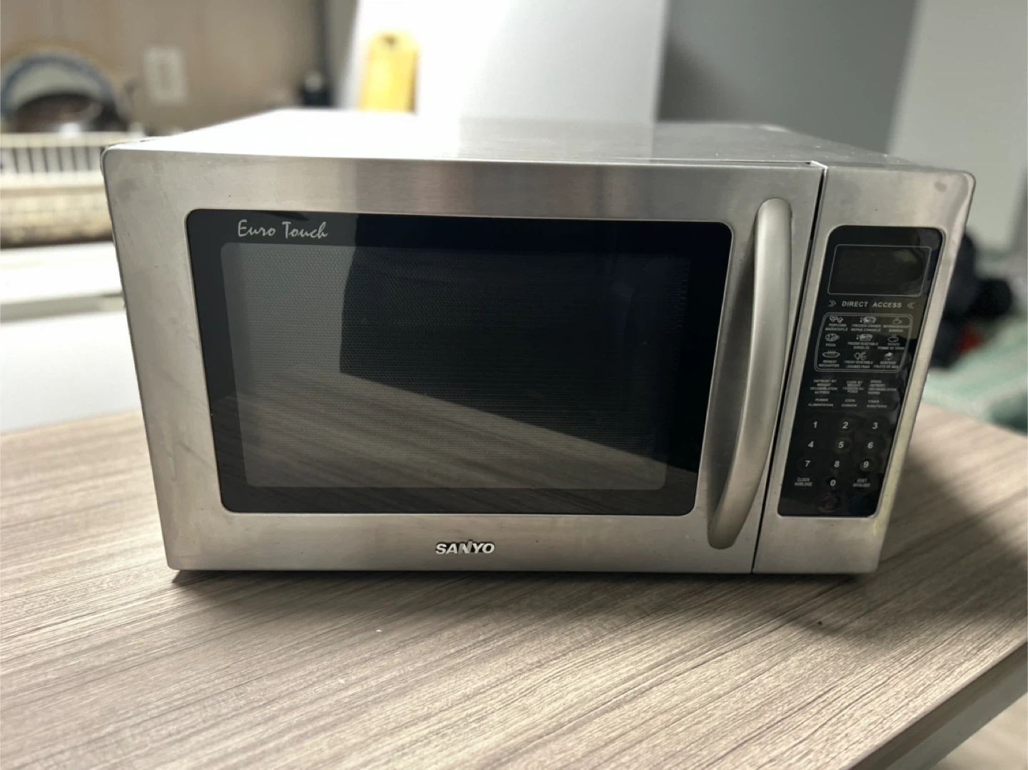 Selling a Sanyo Euro Touch microwave. It's in good working condition and ready for a new kitchen. It has direct access buttons for easy cooking!