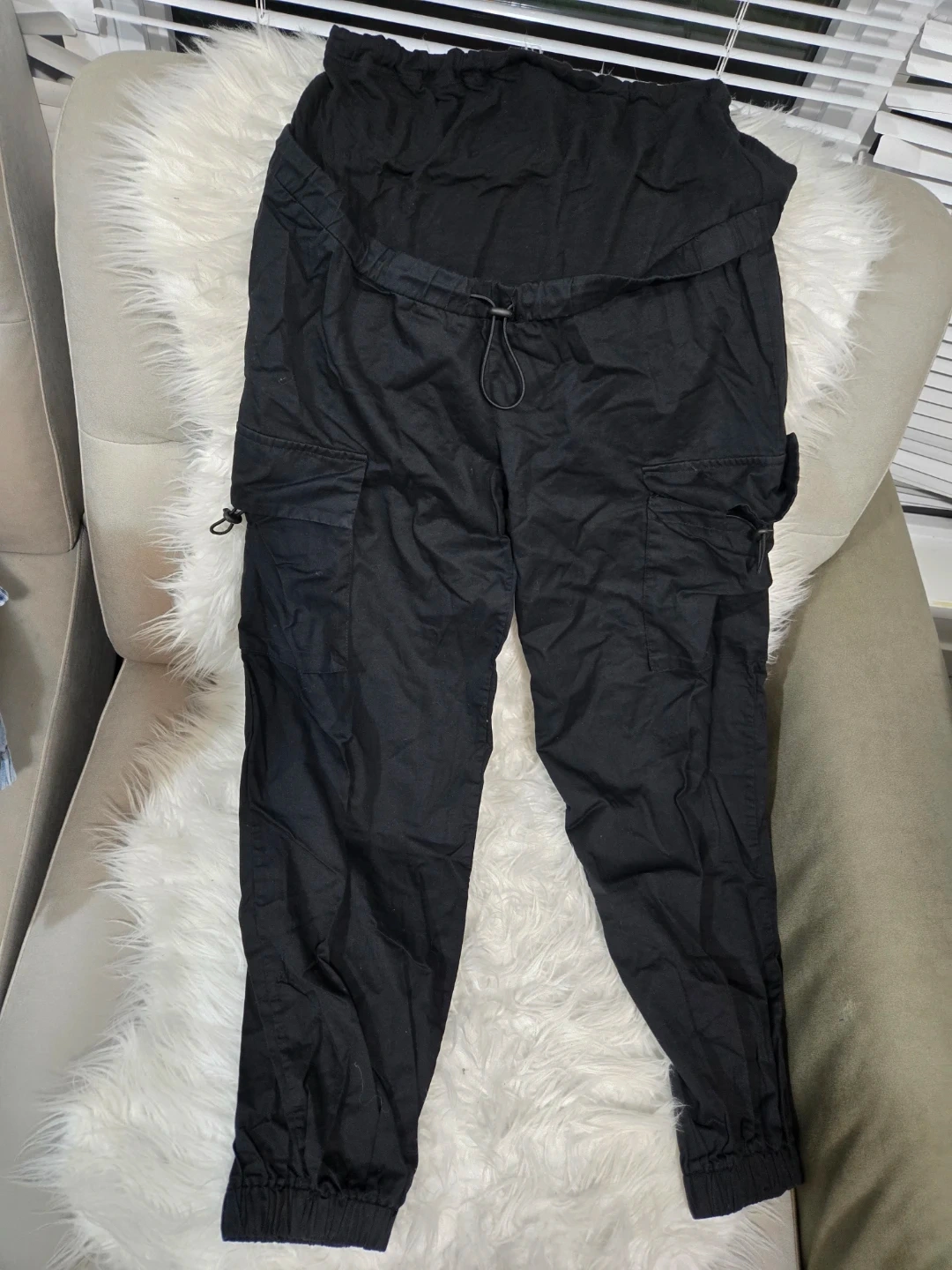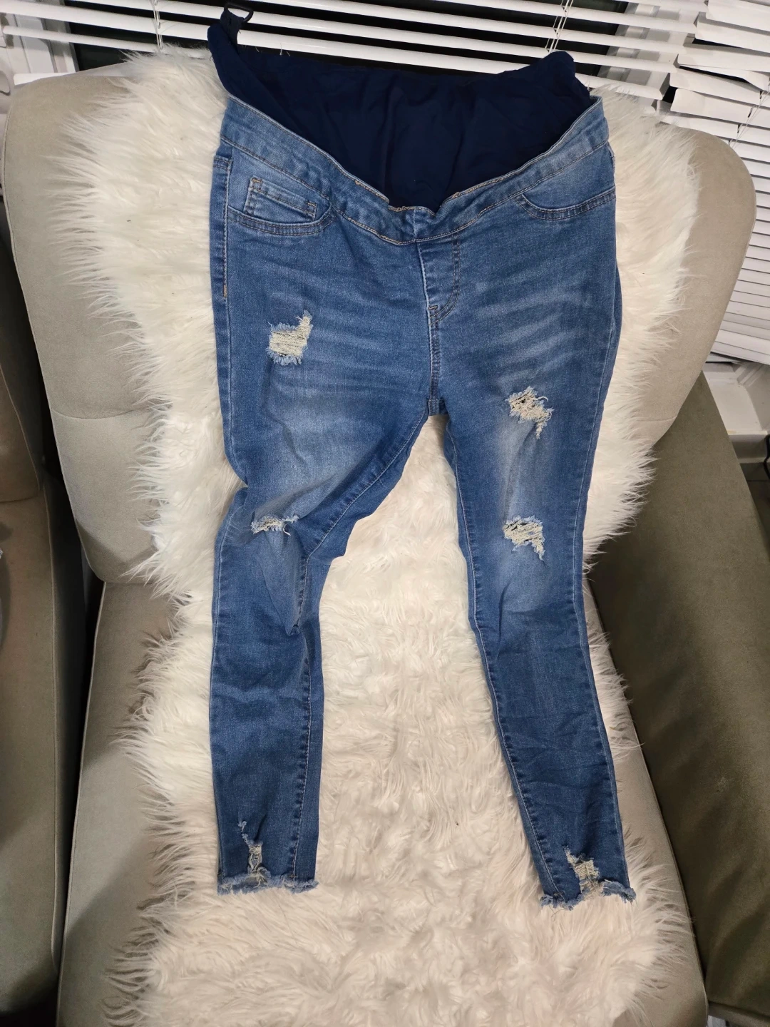 Selling a bundle of maternity pants! Includes jeans with distressed details, comfy joggers, and stretchy leggings. All in good condition and ready for a new mama!