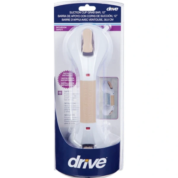 I'm selling a Drive suction cup grab bar, sized at 12 inches. It's perfect for adding extra safety in the bathroom. This grab bar easily attaches to smooth, non-porous surfaces with its suction cup design for a secure hold. Great for anyone needing a little extra support!