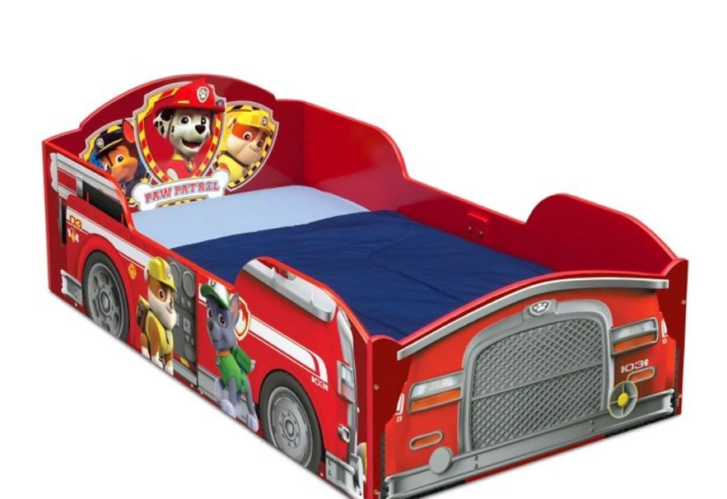 — This Paw Patrol fire truck toddler bed is perfect for your little one! It's in great shape and ready for a new home. The bed features a fun design that will make bedtime exciting for any Paw Patrol fan