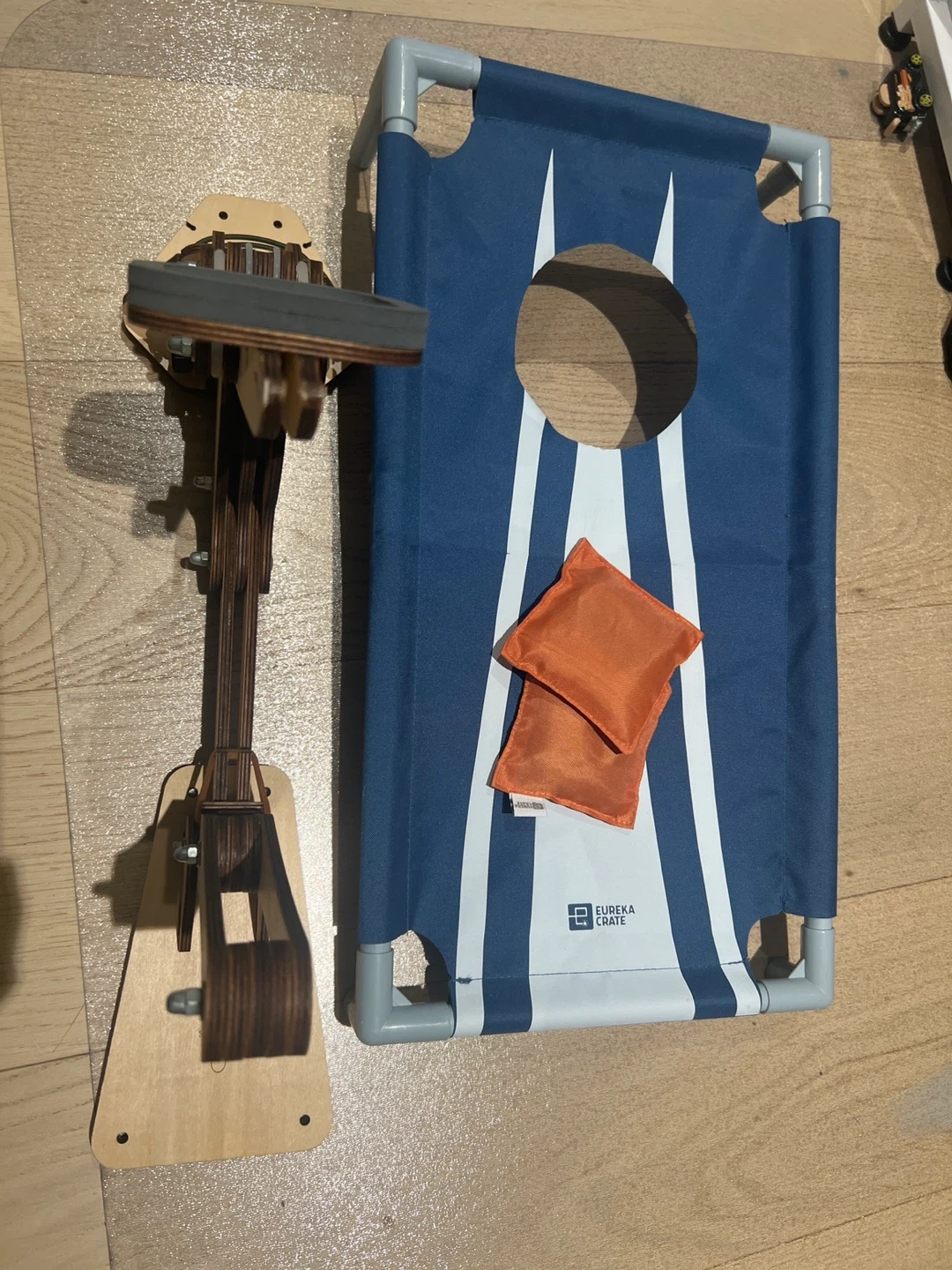 Selling a fun set including a trebuchet and a cornhole game. It's a great way to spend time and learn something new! The set is in good condition and ready for a new owner