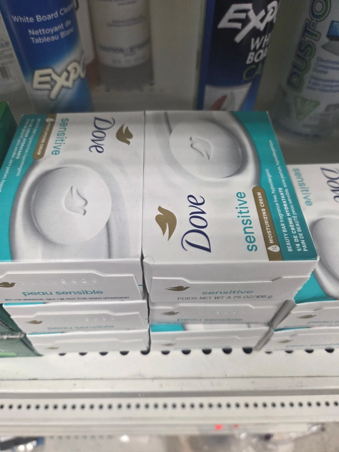 I have some Dove beauty bars for sale! They're 90g each and come in two varieties: Refreshing (cucumber & green tea scent) and Sensitive (peau sensible). Both are beauty cream bars for moisturizing