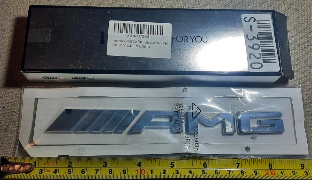 Selling a brand new Knomix A-M-G car emblem decoration in silver. It's still in its original packaging and ready to add a touch of style to your vehicle!