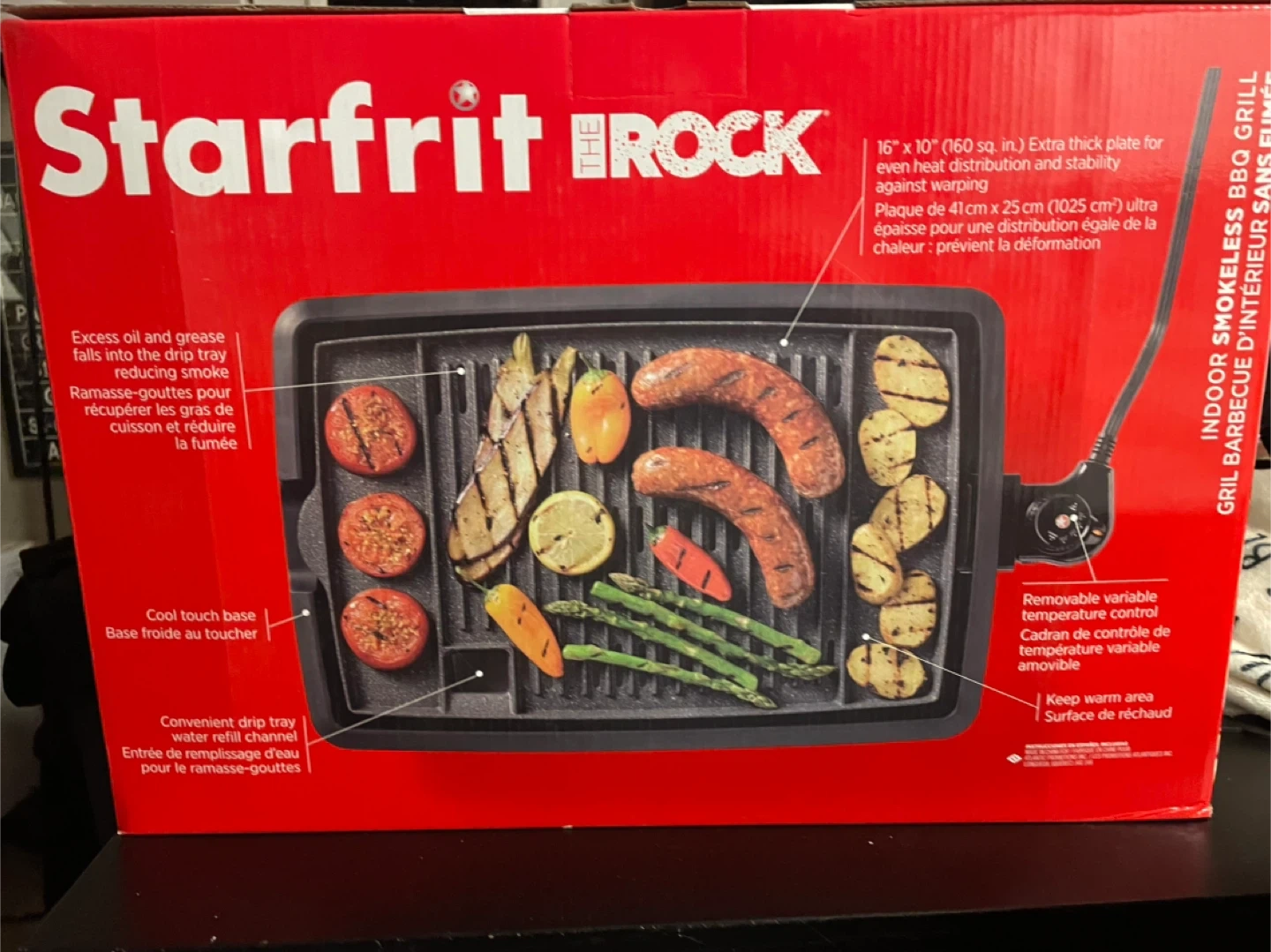 Selling a brand new Starfrit The Rock Indoor Smokeless BBQ Grill! It's still in the box and ready for your next indoor grilling adventure.