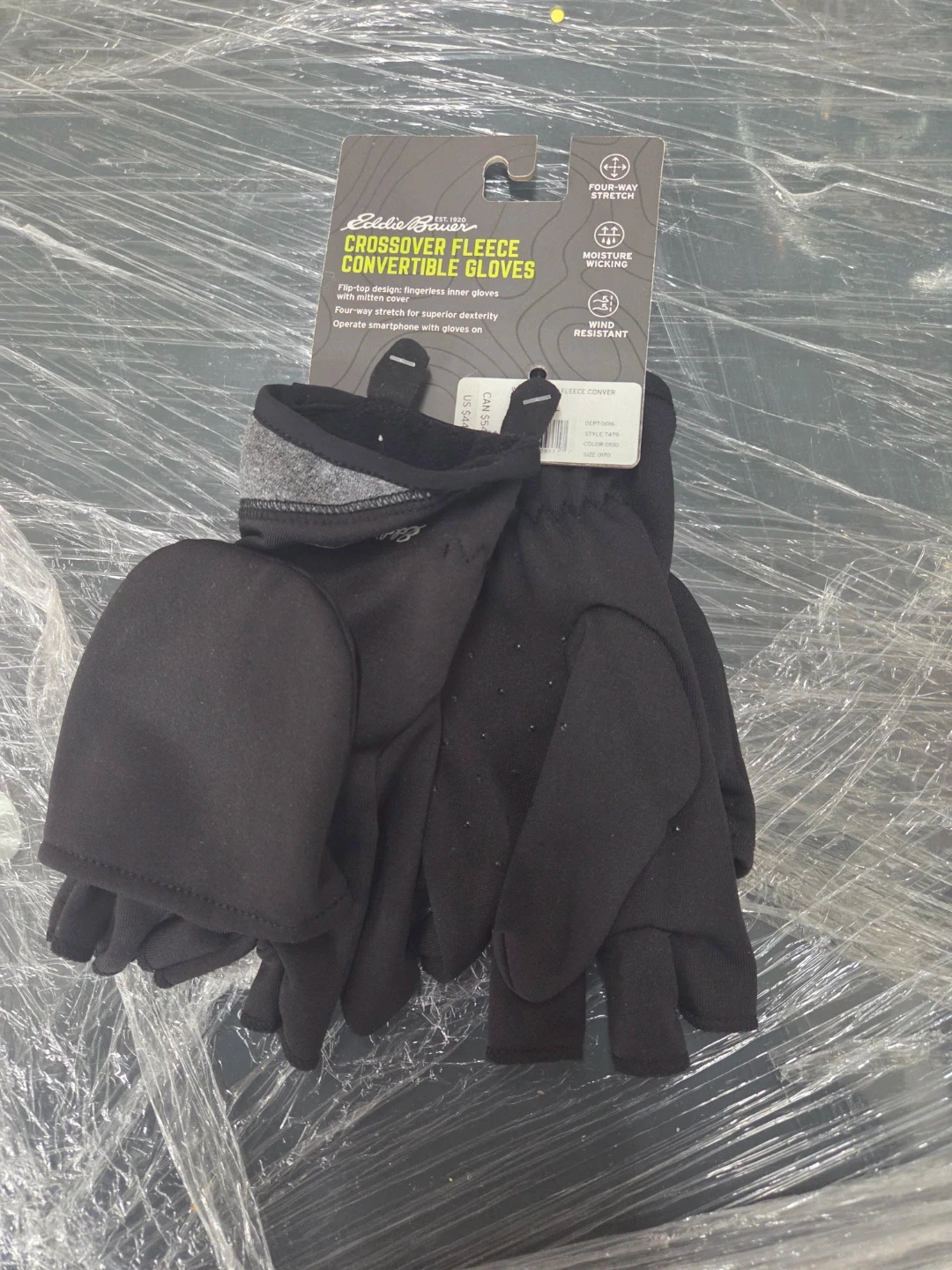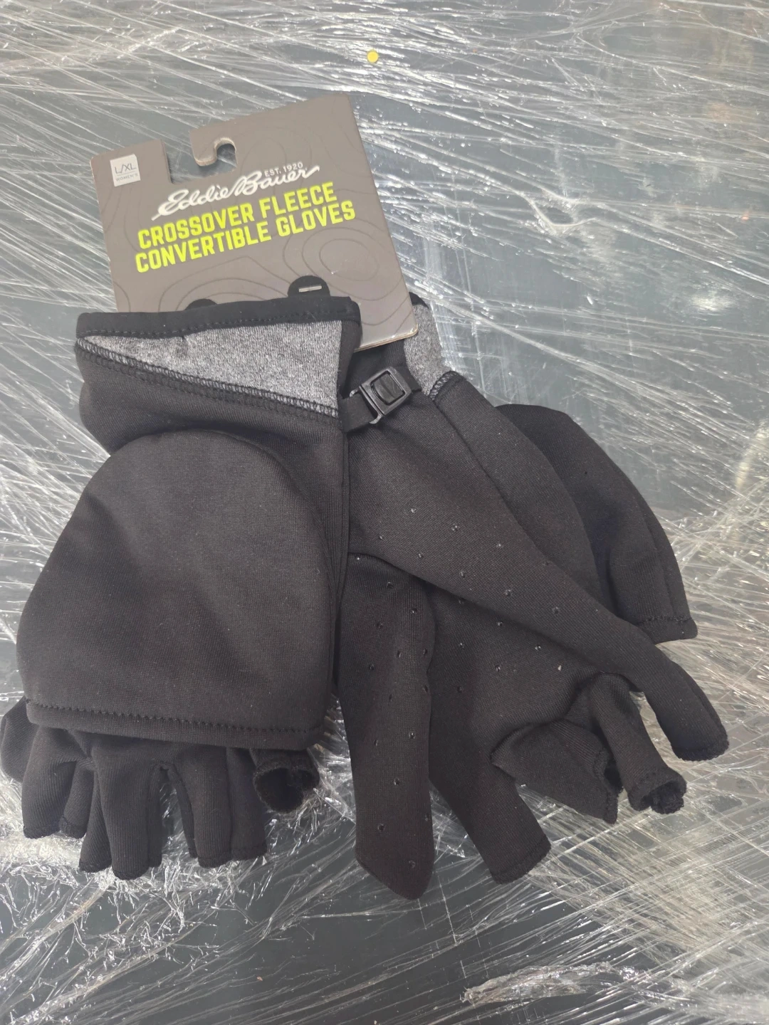 Selling a pair of Eddie Bauer crossover fleece convertible gloves in size L/XL! These gloves have a mitten cover and are made with fleece for superior dexterity. They also feature a wind-resistant and moisture-wicking design, perfect for keeping your hands warm and dry