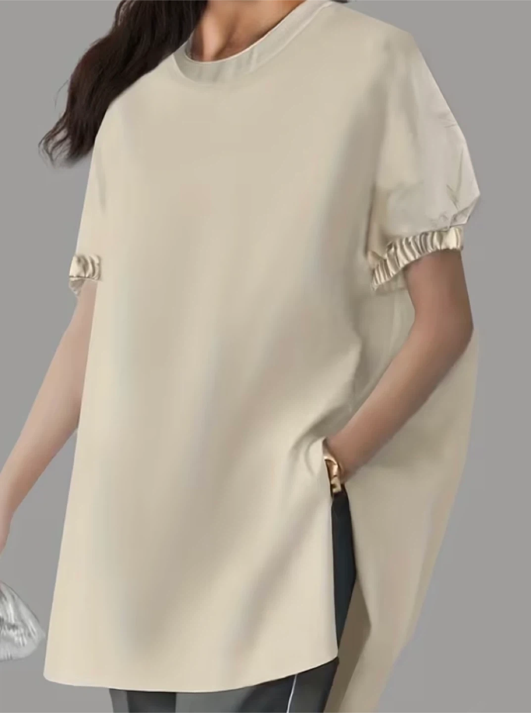 Beige Tunic Top with Ruffle Sleeves