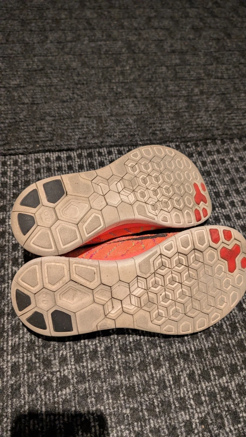Selling a pair of Nike Free 4.0 Flyknit sneakers in a vibrant orange or bright coral colour. They're in good condition and ready for someone new to enjoy! These are lightweight and comfortable, perfect for running or everyday wear. I think it's a 7.5 or size 8. No size marking