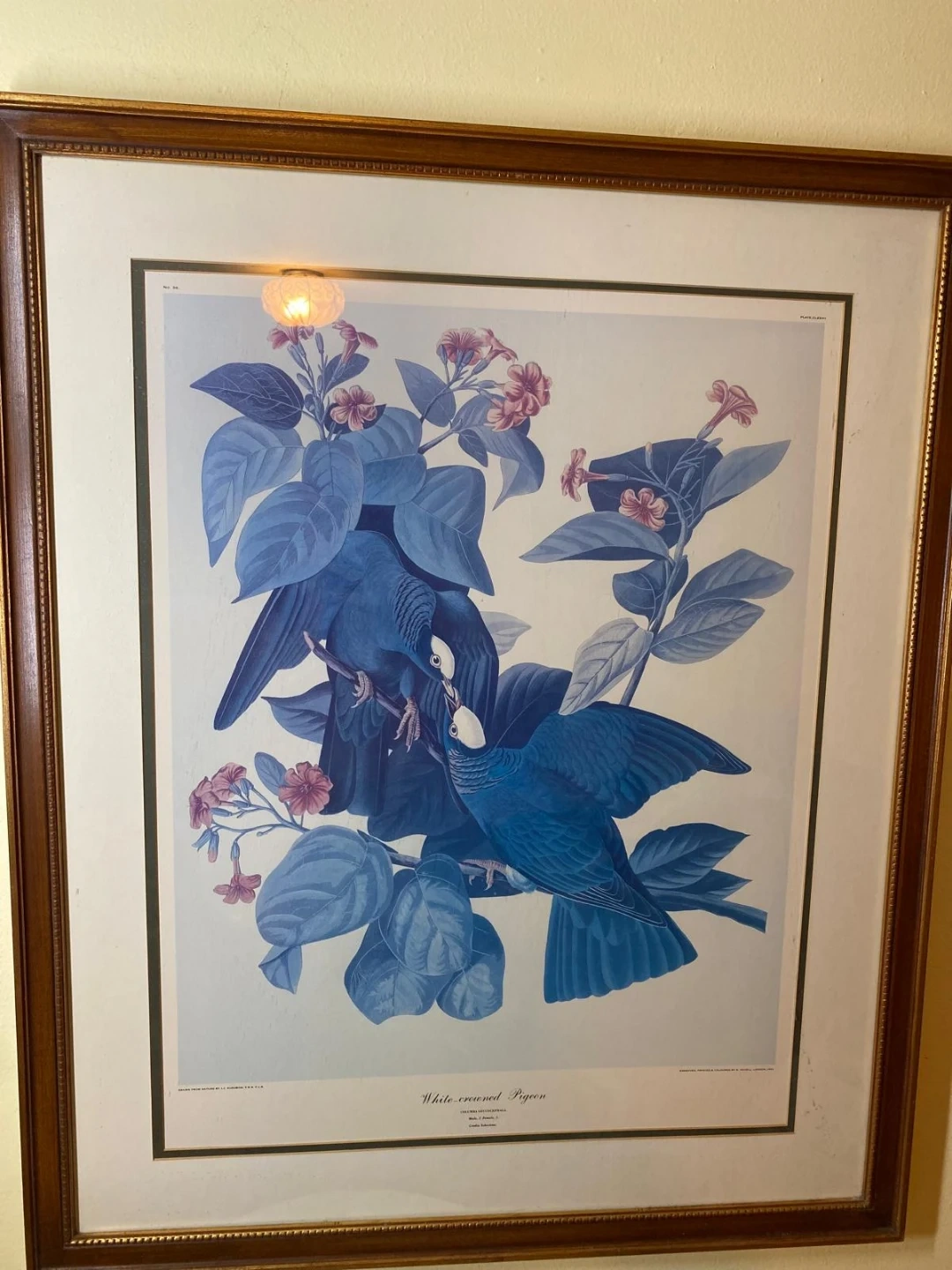 Selling a framed print of J.J. Audubon's 'White-crowned Pigeon'. The print is marked as 'Plate, CLXXVII' and 'Engraved, Printed, & Coloured, by R. Havell, London, 1833'. It's a beautiful piece drawn from nature!