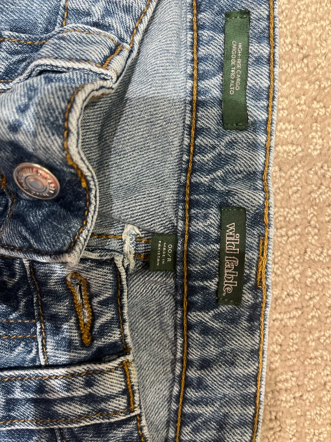 Selling a pair of Wild Fable high-rise cargo jeans in size 00/R! They're in great condition and ready for a new wardrobe