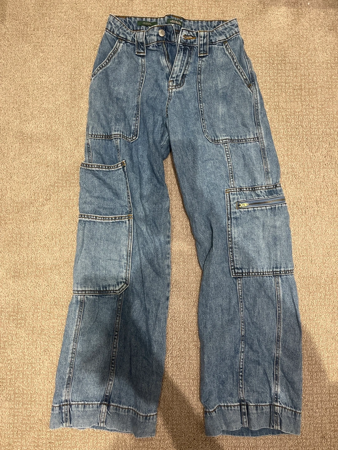 Selling a pair of Wild Fable high-rise cargo jeans in size 00/R! They're in great condition and ready for a new wardrobe